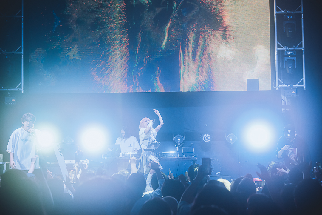 ステージが進むと次第にオーディエンスに開かれたパフォーマンスに変化して、ラストの「By my side」ではHanagataがハンズアップする様子に自ずとフロアも同調。ラッパーというより、シンガーソングライター的な資質を見せるユニークな存在として強い印象を残した。