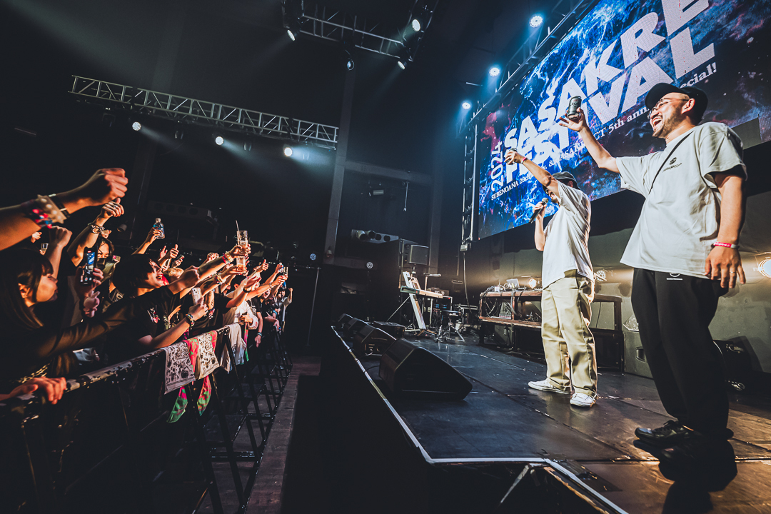 中盤のダダダ!で、ゲストにダンサーであるTEMPURA KIDZのKARINが登場し、東アジアの民族調ダンスで大いに盛り上げる。高速ラップで世の中のあらゆる勘違いした崇拝にユーモアを込めてノーを突きつける「nobody崇拝」などを圧巻のダンスパフォーマンスを交えて展開。終盤はKARINもマイクを持ち、いつかのコンビネーションで魅せていく。さらにQ昆のヤバすぎるVJも相まって、「ミイラキラー」はライブならではの痛快さに突入していた。ラストは「イイナヅケブルー」を新たなバージョンにアップデート、約30分に12曲という特盛セトリで沸かせてくれたのだった。