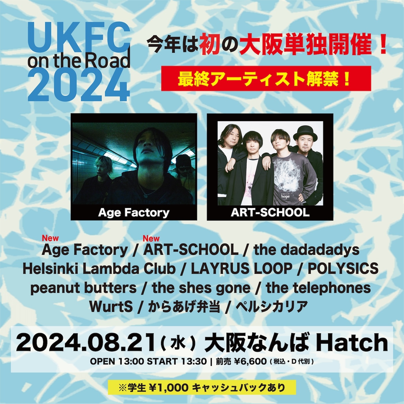 8月21日(水)に大阪なんばHatchにて開催される、UK.PROJECTのレーベル部門とプロダクション部門による夏の恒例イベント『UKFC on the Road』の最終出演者が発表された。