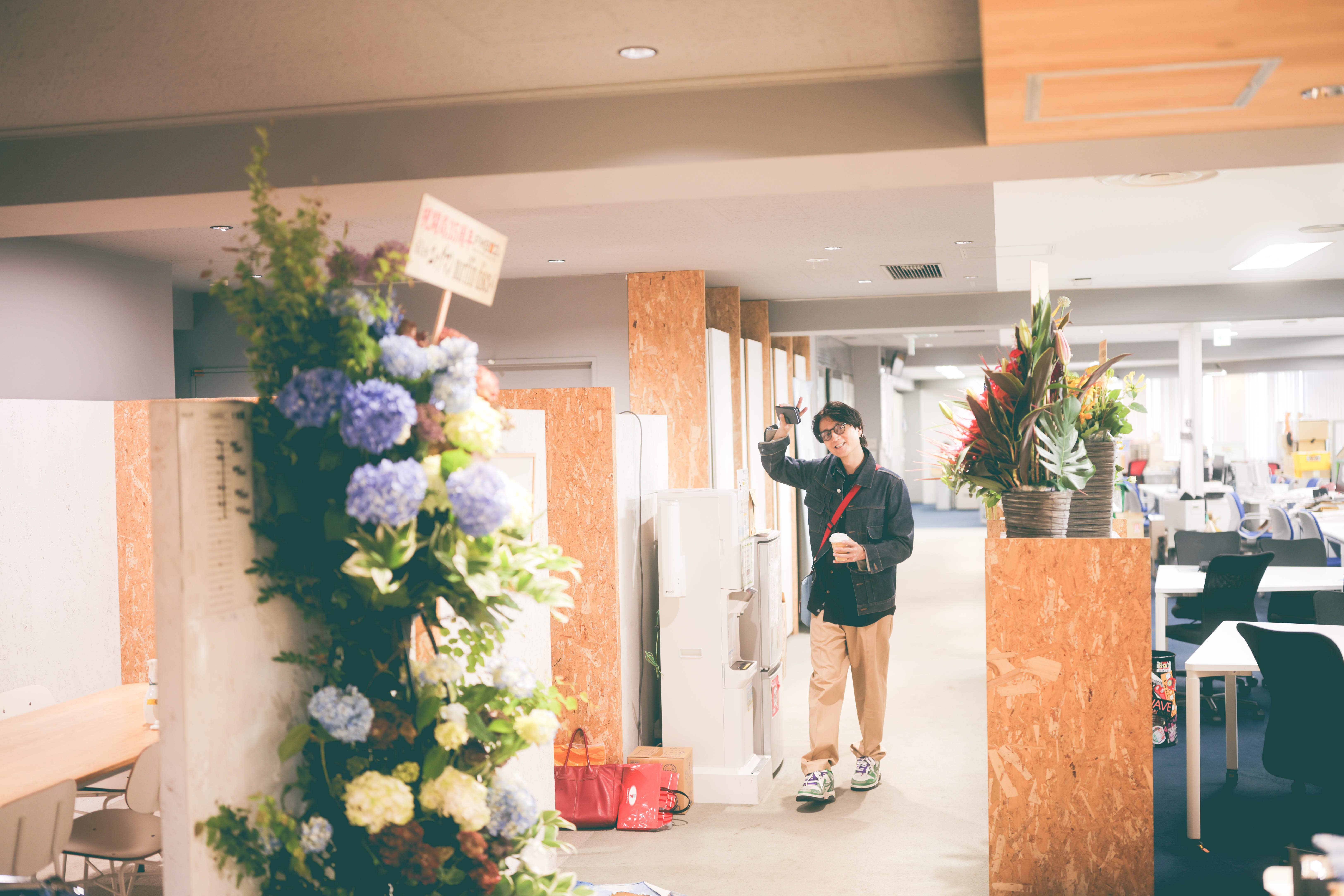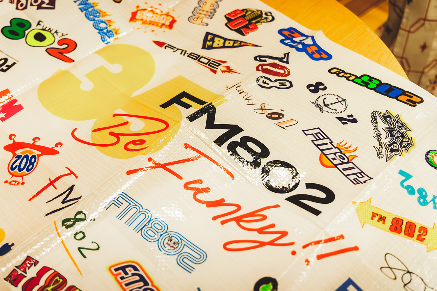 FM802が拠点とするのは、大阪・南森町。駅前ビルの8Fで、24時間明かりがともり続けるスタジオ、そして「FUNKY BAR」と呼ばれるフリースペースでは、出番前のDJがコンディションを整えたり、アーティストが番組スタッフと談笑したり……。時には公開収録などのイベントも行うため、その景色をご存知のリスナーも多いことだろう。開局記念日のこの日は、たくさんの祝花があふれ、忙しなく働くスタッフたちからもうきうきしたムードが感じられる。