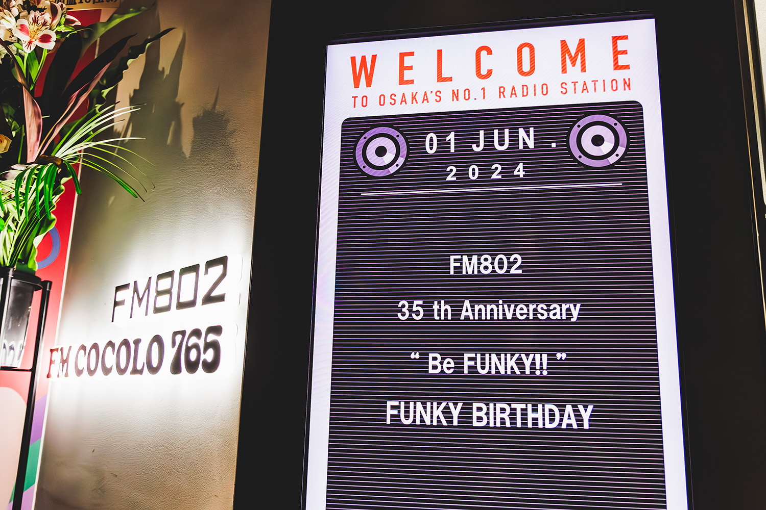1989年6月1日に開局。一日の始まりを告げるモーニングコールに、お昼休みの憩いのひとときに、ナイトルーティンのお供に……etc。さまざまなシーンに寄り添うFMラジオ局として、近畿エリアの人々を中心に愛され続けるFM802。今年で開局35周年を迎えた同局のお祭り当日=6月1日(土)、大阪・南森町のFM802本社へ潜入! 各プログラムを軸に、人気DJの飛び入り参加や、ゆかりのアーティストがコメントを寄せる、祝祭感満載の現場にSPICEが完全密着。さらには、舞台を大阪城公園に移し、イベント『FM802 35th ANNIVERSARY Be FUNKY!! TERRACE』の様子もレポート。ラジオを真ん中に、たくさんの笑顔が伝播した一日をご覧あれ。