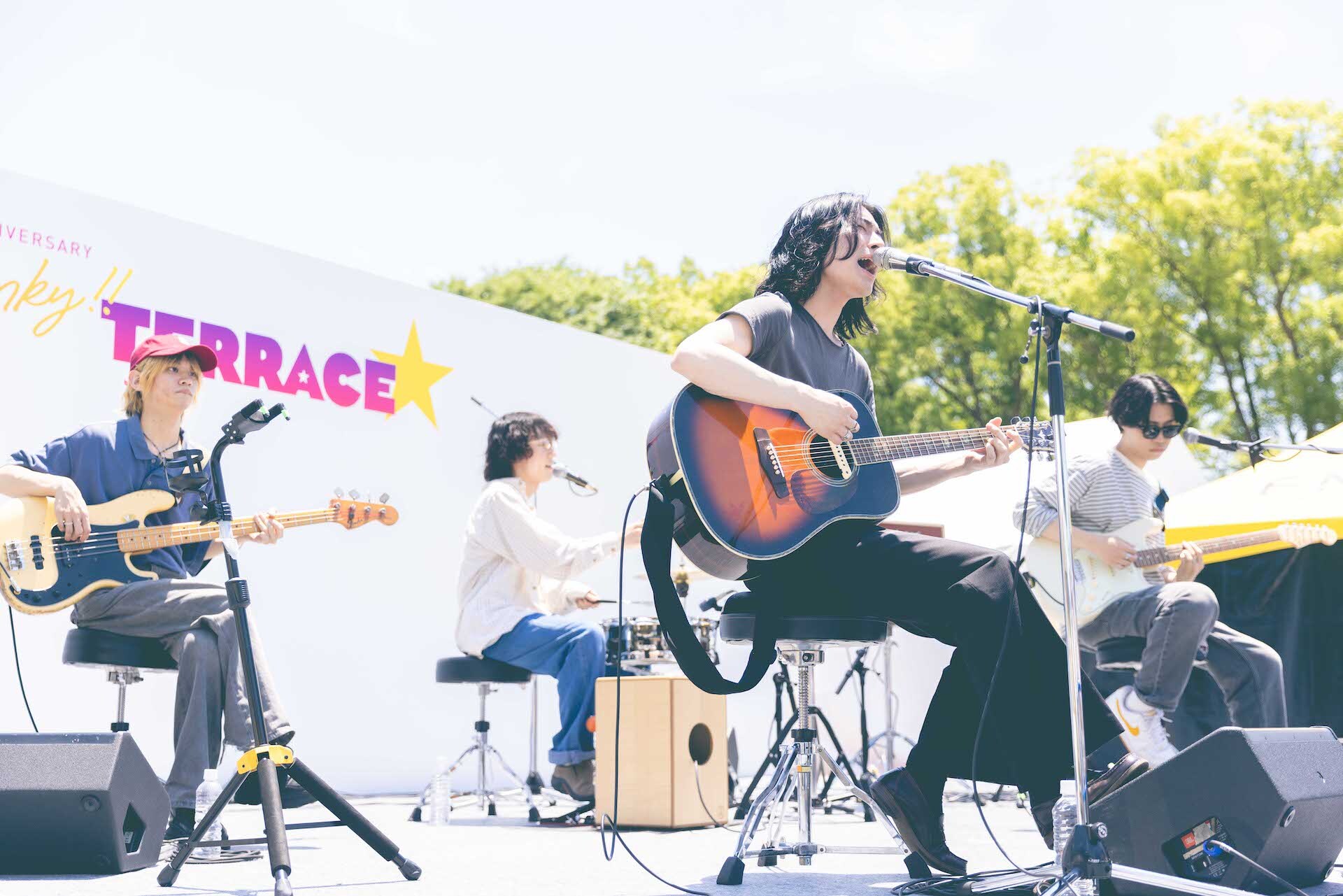 ステージの前に黒山の人だかりができ、DJ田中麻希が「ホットなライブを見せてくれるはず!」と促すや、2024年のFM802×ららぽーとACCESS!キャンペーンソング Radio Happy Willows「はなむけ」の参加シンガーでもあるw.o.d.のサイトウタクヤ(Vo.Gt)がお出ましに。普段のバンドスタイルとは異なりサイトウの歌とギターのみというシンプルな編成。それゆえ「オレンジ」に始まった人気曲も、歌声が切々と迫ってくる贅沢な響きだ。2022年10月度のヘビーローテーション「馬鹿と虎馬」をソウルフルに聴かせ、かと思えば「Sunflower」をみずみずしく鳴らし、改めてその求心力を見せつけていく。「ライブと音楽が大好きです、また遊びましょう!」とシメの「1994」ではこの日イチの絶唱で圧倒! それぞれにキラリと光る個性を示した3組のアクト。音楽シーンのネクストブレイカーを数多く発掘してきたFM802だけに、この日のステージもきっと新たなヒストリーを彩る1ページとなったことだろう。