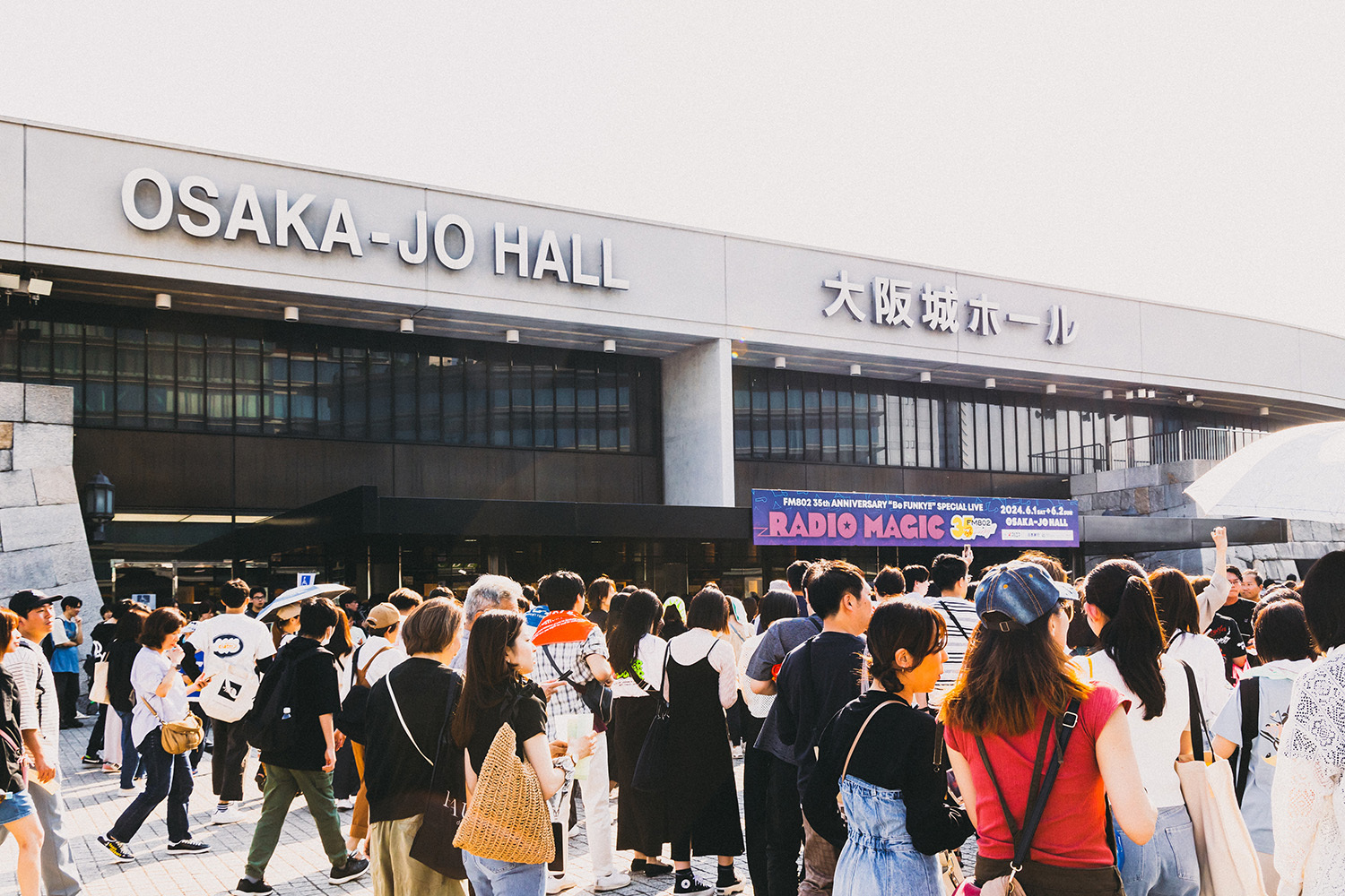 その様子を笑顔で見守っていたひとり、DJ内田絢子に声をかけてみると「私たちも今日をとっても楽しみにしていて。ラジオもこの会場も『RADIO MAGIC』ならではの空気ですね」と話してくれた。たしかに、朝のラジオからDJたちが飛び込み参加し合ったり、「やっぱりええなぁ」をテーマにリクエストを募ってラジオや好きなアーティストとの思い出を語ったり。大阪城ホールには、35周年をお祝いすべくFM802と縁の深いアーティストが駆けつけ、リスナーと共に特別な時間をつくりあげていたり……。1日のどこを切り取っても祝祭感に満ち溢れていて、ラジオを聞いていてもSNSを見ていてもイベントに参加していてもハッピーな気持ちになるのは、『RADIO MAGIC』ならではかもしれない。