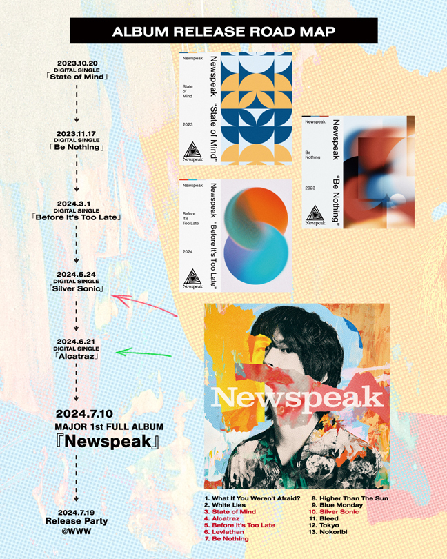 7月19日(金)にはWWWにて、アルバムを引提げてのライブ『Newspeak Major 1st Album 『Newspeak』 Release Party』も開催。チケットはイープラスにて一般発売中。