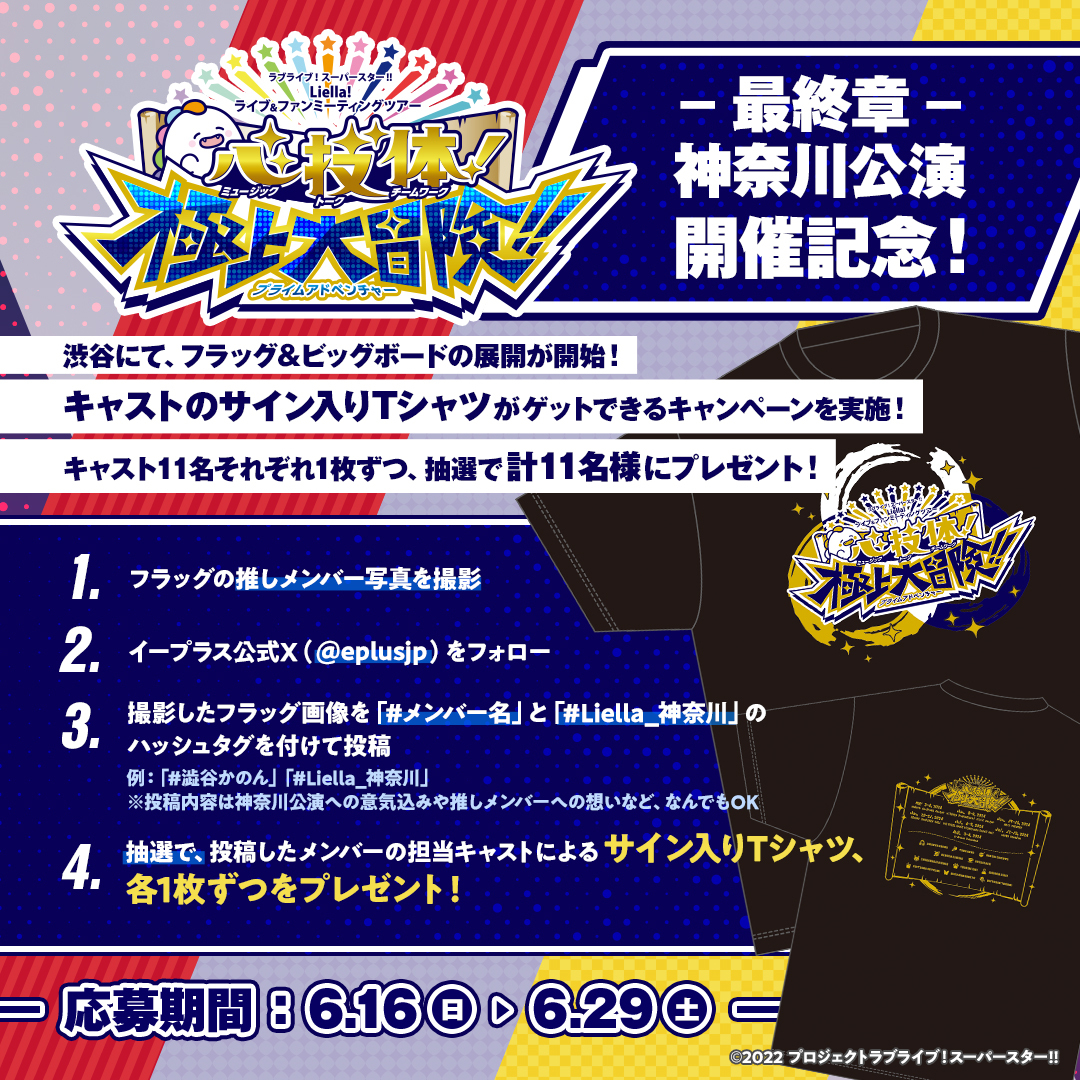 「ラブライブ!スーパースター!! Liella! ユニットライブ&ファンミーティングツアー 心・技・体!極上大冒険!!」最終章となる神奈川公演の開催を記念して、6月16日(日)~6月29日(土)で渋谷 道玄坂・文化村通街頭フラッグ、ビックボードが登場、さらにはプレゼントキャンペーンを実施中。