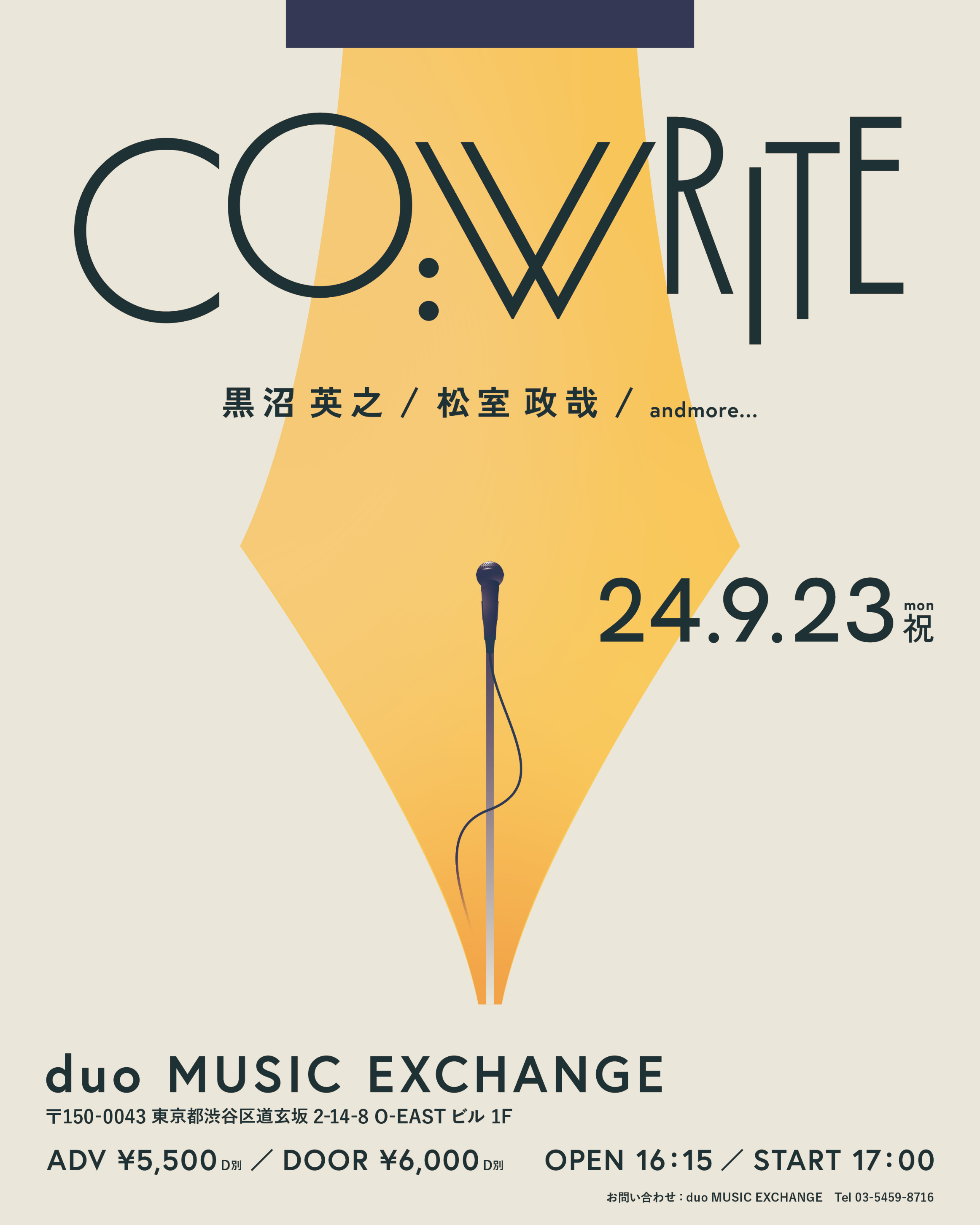 同曲リリースとともに、松室も出演するイベント『Co:write』を9月23日(月・祝)に東京・duo MUSIC EXCHANGEで開催することも発表。チケットは、イープラスにて7月3日(水)23時59分まで先行受付中だ。