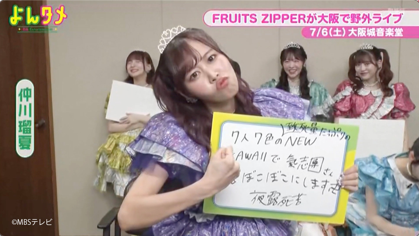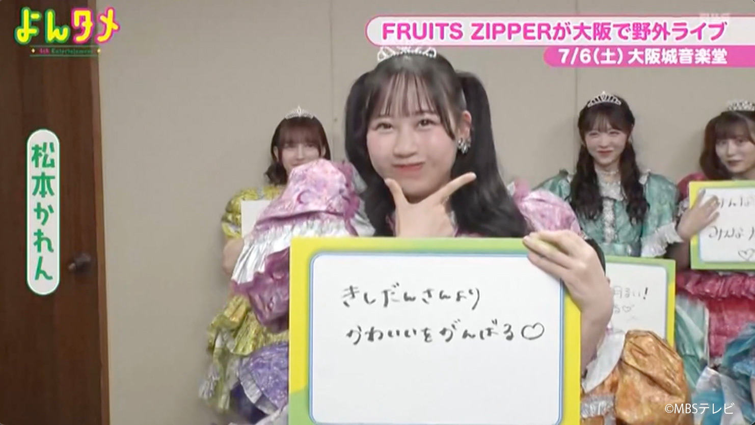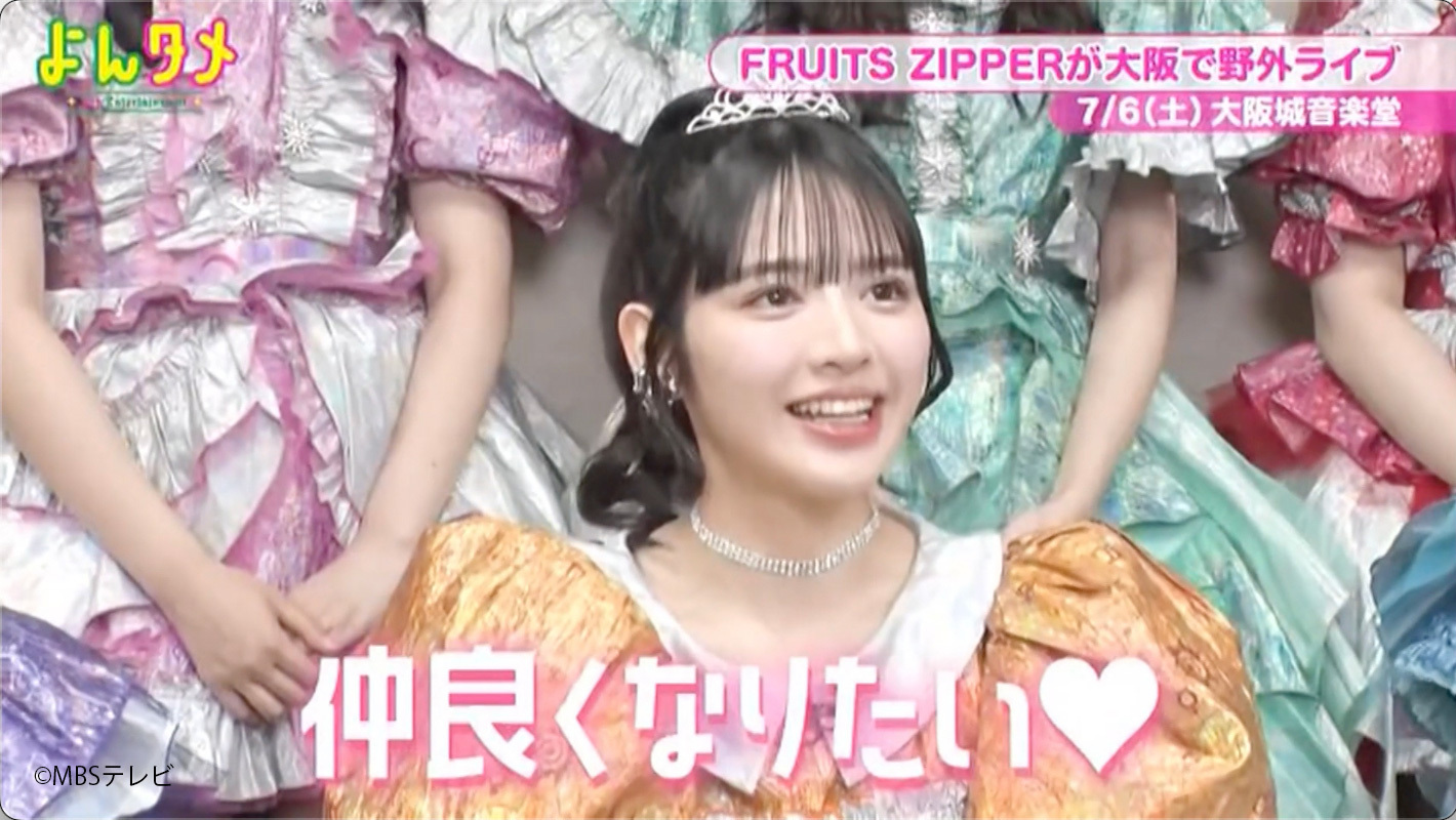 深夜のエンターテインメント情報番組『よんタメ』(関西ローカル・MBS)に、FRUITS ZIPPERが登場。2024年7月6日(土)大阪・大阪城音楽堂にて開催、氣志團とのツーマンライブ『SOUND CONNECTION -レインボーカーニバル- 』への意気込みを語った。