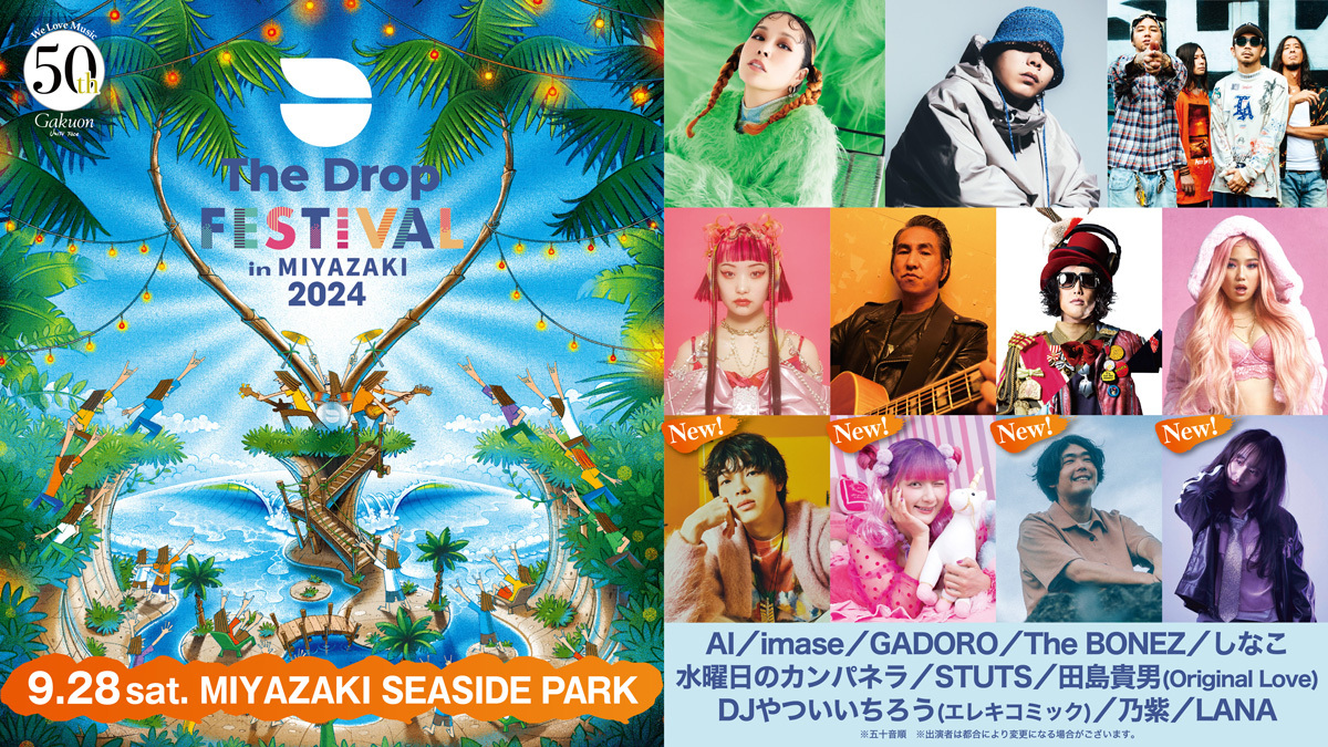 2024年9月28日(土)宮崎県・みやざき臨海公園多目的芝広場にて開催される野外音楽フェス『THE DROP FESTIVAL 2024 in MIYAZAKI』の第2弾出演アーティストが発表された。