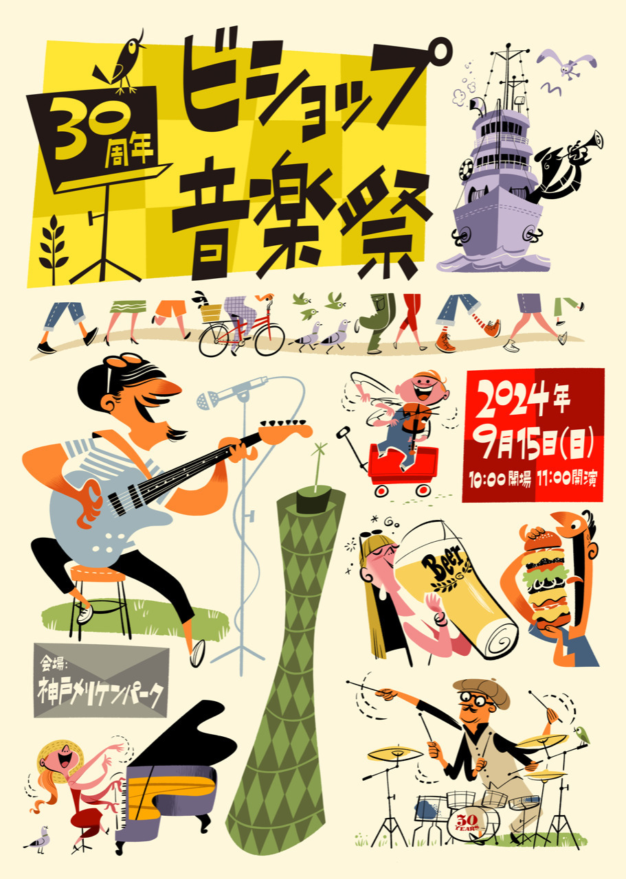 ビショップ創立30周年を記念して、地元神戸のメリケンパークを舞台に、音楽とファッション、ライフスタイルを楽しめる野外フェス『ビショップ音楽祭』。すでにウルフルズ、大橋トリオ、chelmicoの出演が決まっており、追加でKREVAとtofubeatsも参加する。