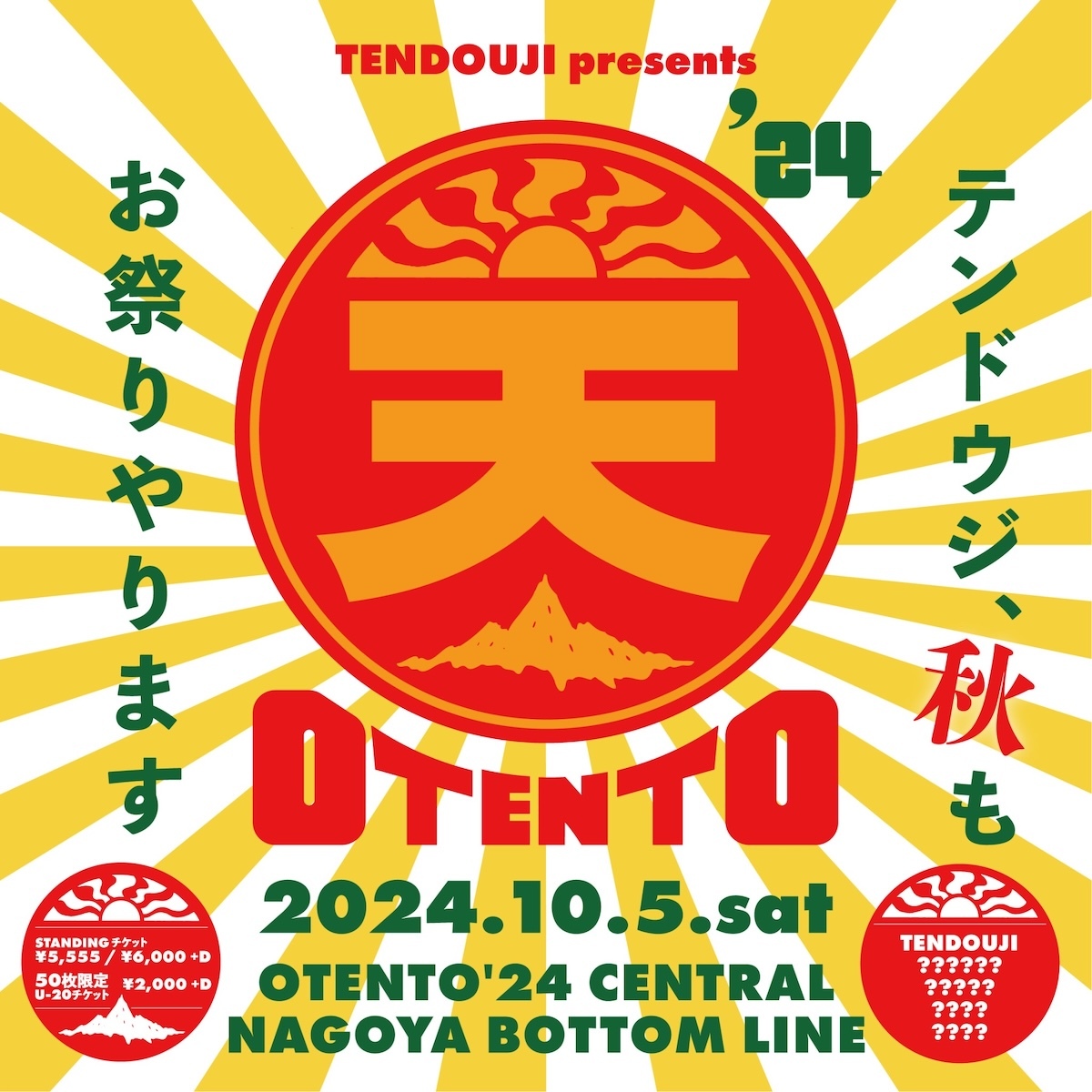 二つ目は、10月5日(土)にTENDOUJIの主催フェス『OTENTO』の名古屋での初開催が決定。今年の3月に東京大阪で開催された際にはどちらもチケットが完売となった。名古屋編も豪華ゲストが確約されているという。