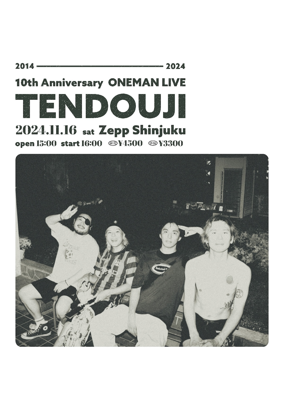 本日・6月29日(土)、恵比寿リキッドルームでのワンマン公演を終えた結成10周年のTENDOUJI。ライブの最後に今年の締め括りイベントを三つ発表した。