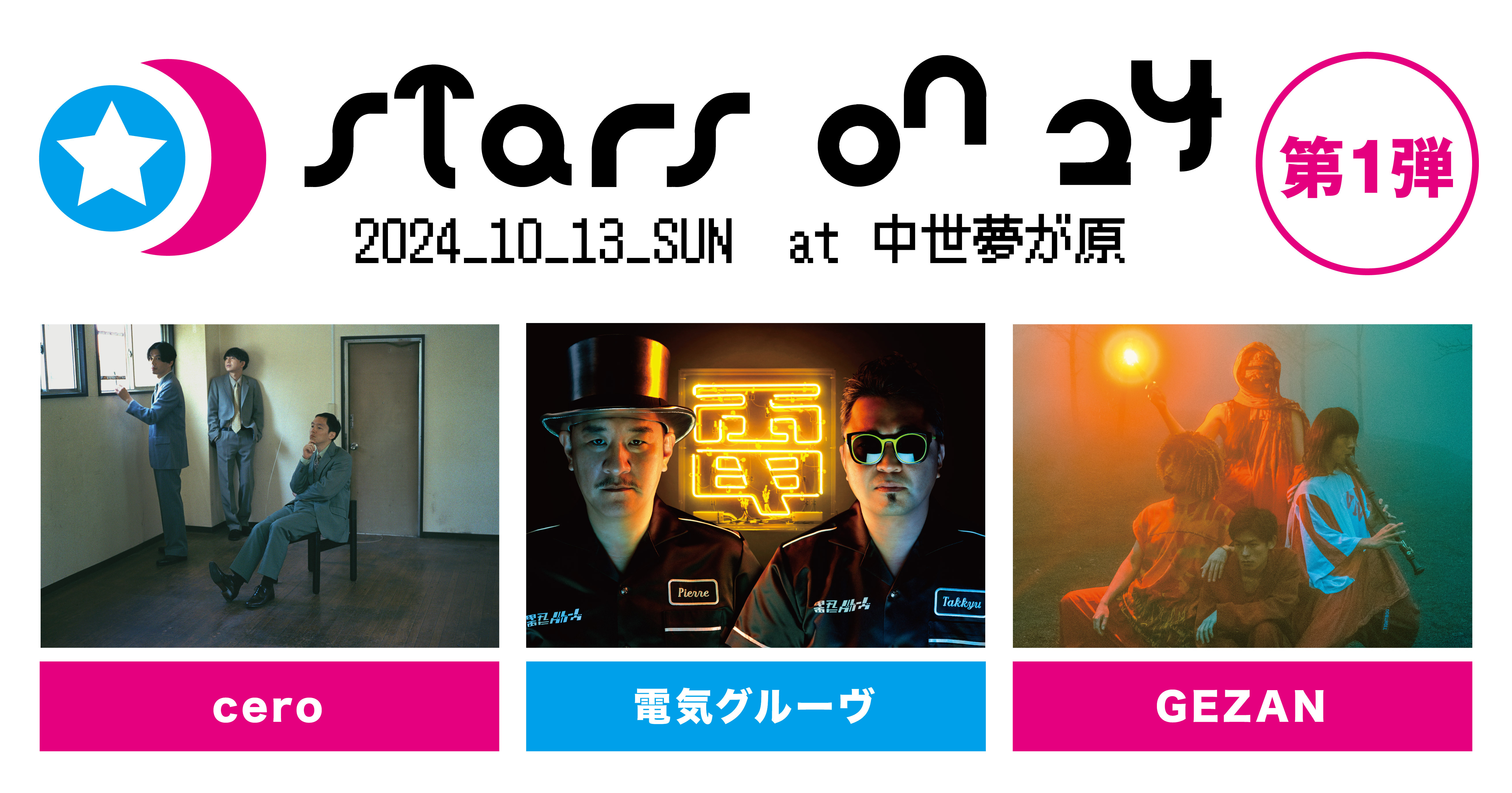2024年10月13日(日)に、岡山県・中世夢が原にて開催される野外音楽フェス『STARS ON 24』の第1弾出演アーティストが発表され、cero、電気グルーヴ、GEZANの出演が決定した。