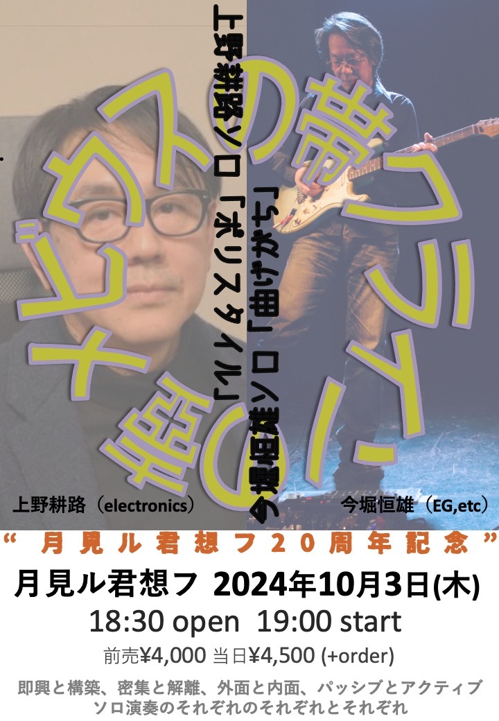 10月3日(木)には、上野耕路と今堀恒雄それぞれによるソロセットステージが展開する『メビウスの帯クラインの壺』が開催。チケットは、イープラスにて受付中だ。