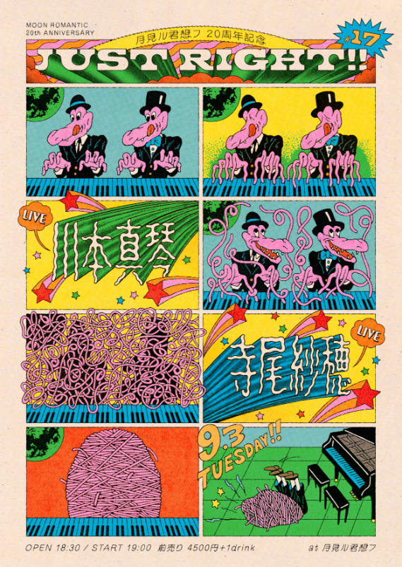 9月3日(火)には、月見ル君想フ主催のレギュラー企画『JUST RIGHT!! vol.17』を特別編として実施。同会場にグランドピアノを設置し、川本真琴と寺尾紗穂による初共演のツーマンライブが行われる。こちらのチケットも、イープラスにて受付中。