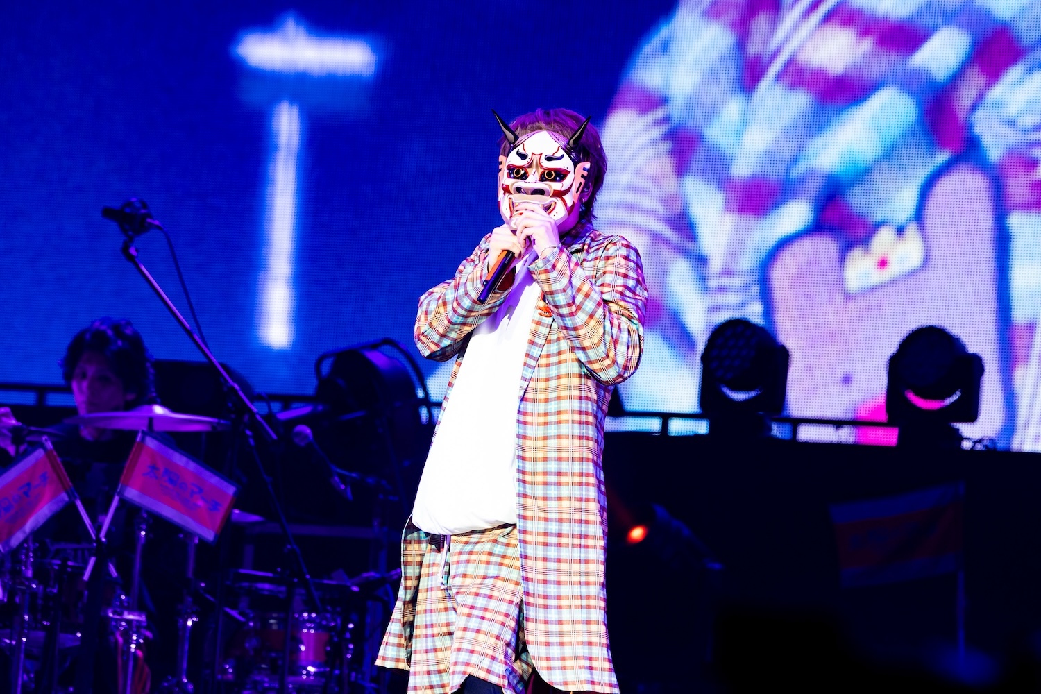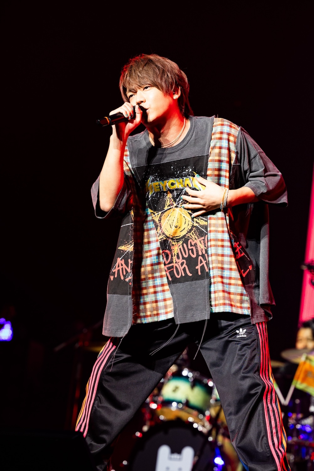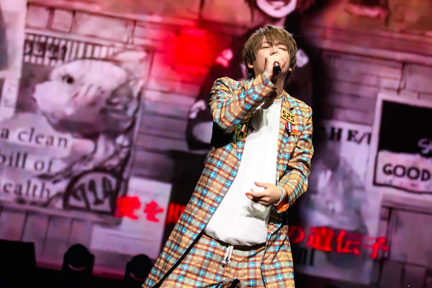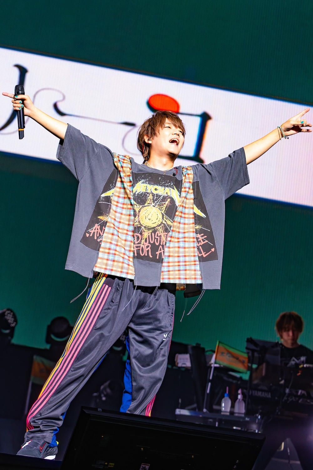 この後、ステージにはあらきが呼び込まれ、彼のソロタイムに引き継がれる。あらきはパワフルなハイトーンボーカルで「ヒバナ」を披露し、ハードなパフォーマンスで挑発。その後はめいちゃんと「偽物人間40号」をコラボし、場内はあらきのイメージカラーの赤とめいちゃんカラーのオレンジで情熱的な空間に染まった。