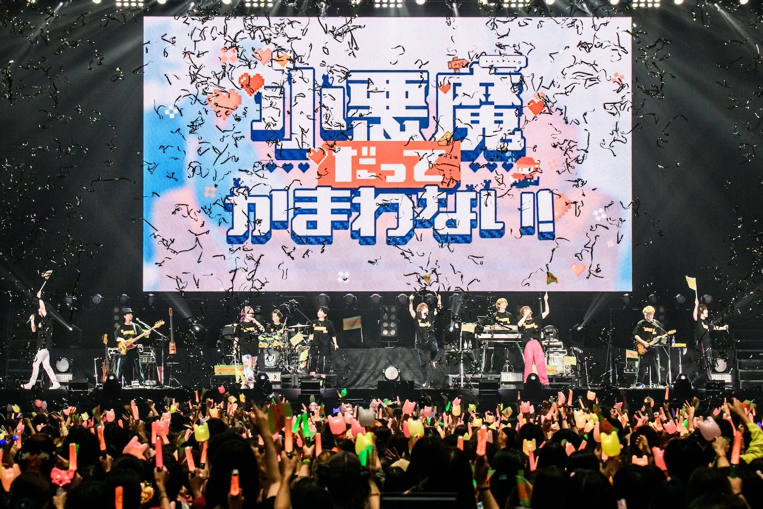 アンコールでは出演者がステージに大集合。改めてそれぞれがめいちゃんへのメッセージを送った。中でもGeroは肉チョモランマを結成したことで(悪い意味ではなく)、「めいちゃんはビジネスパートナーだった。やっぱりいろんなことを成立させていかんとこもあって。でも、僕はめいちゃんが休止することで少しだけ嬉しいことがあって、それはまた友達に戻れること。仕事を離れたところで、めいちゃんとまた友達に戻れる。これが本当に嬉しい」と偽らざる思いを吐露。めいちゃん、ここでかなりウルウルきていたようだが、踏ん張って感謝の言葉を述べた。その言葉の中で、もともとニコニコ動画にコメントしているようなキッズだったことや、いまだに人気の歌い手と肩を並べて歌っていることが信じられないこと、そしてこの日を迎えていることを語り、「今日は幸せな1日でした! ありがとうございました!」と、深く一礼、ここからしばらくは拍手が鳴りやまなかった。ただ、湿っぽくならないように、このタイミングで恒例の記念撮影。和気あいあいの集合写真をSNSでチェックした方も多いことだろう。大ラス曲はステージの仲間達と盛大に「小悪魔だってかまわない!」の豪華集団歌唱でフェスらしいエンディングを演出。観客も一緒になって声を出す。銀テープが飛び出して、賑やかにフェスが終了。
