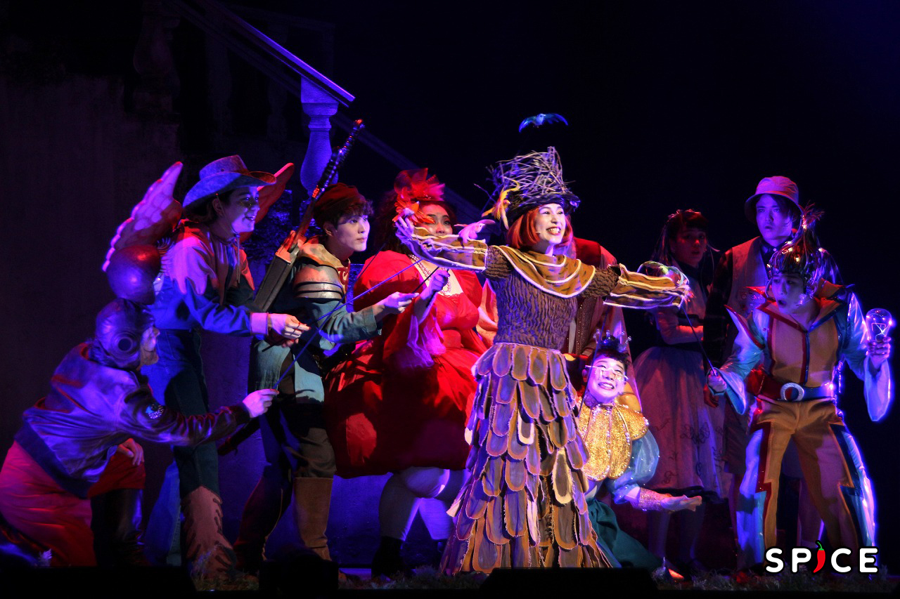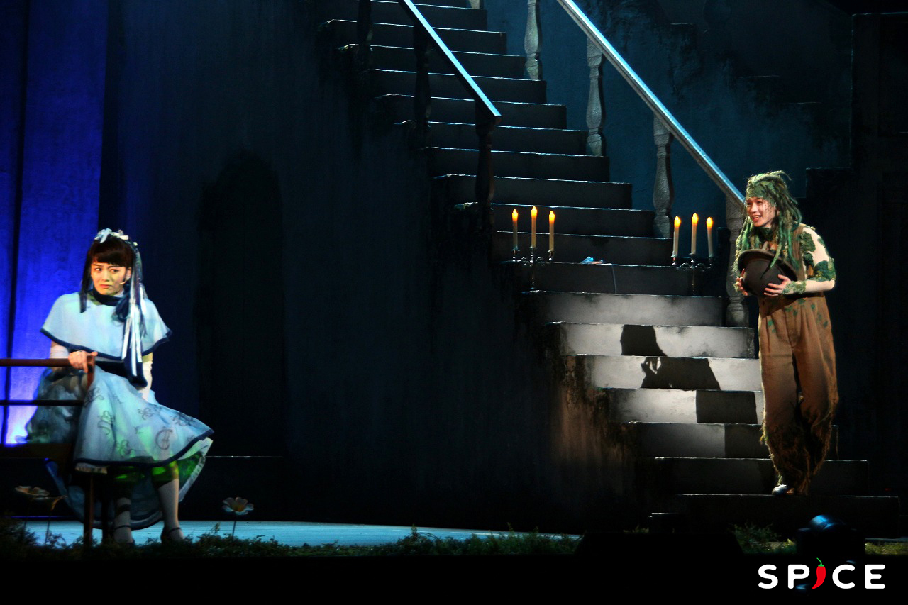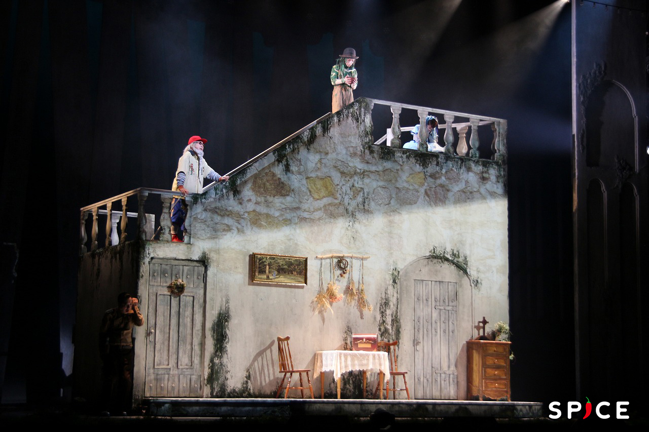 演者のパワフルな歌声、繊細な演技を際立たせるのは、ヴィオラやヴァイオリンなどの生演奏。心が躍るケルト音楽は作品の世界を豊かに盛り上げていく。羽の生えた「天使」、背中に甲羅がある「ウミガメ」、体中が光っている「電池」、落ち着きのない「戦士」など、病に冒された村人たちを象徴するユニークな衣装も目が離せない。物語の進行と共に形を変えるセットは、だまし絵のよう。建物の壁に演者が歌う歌詞が映し出されるなど、細部にまでサプライズが詰まっている。