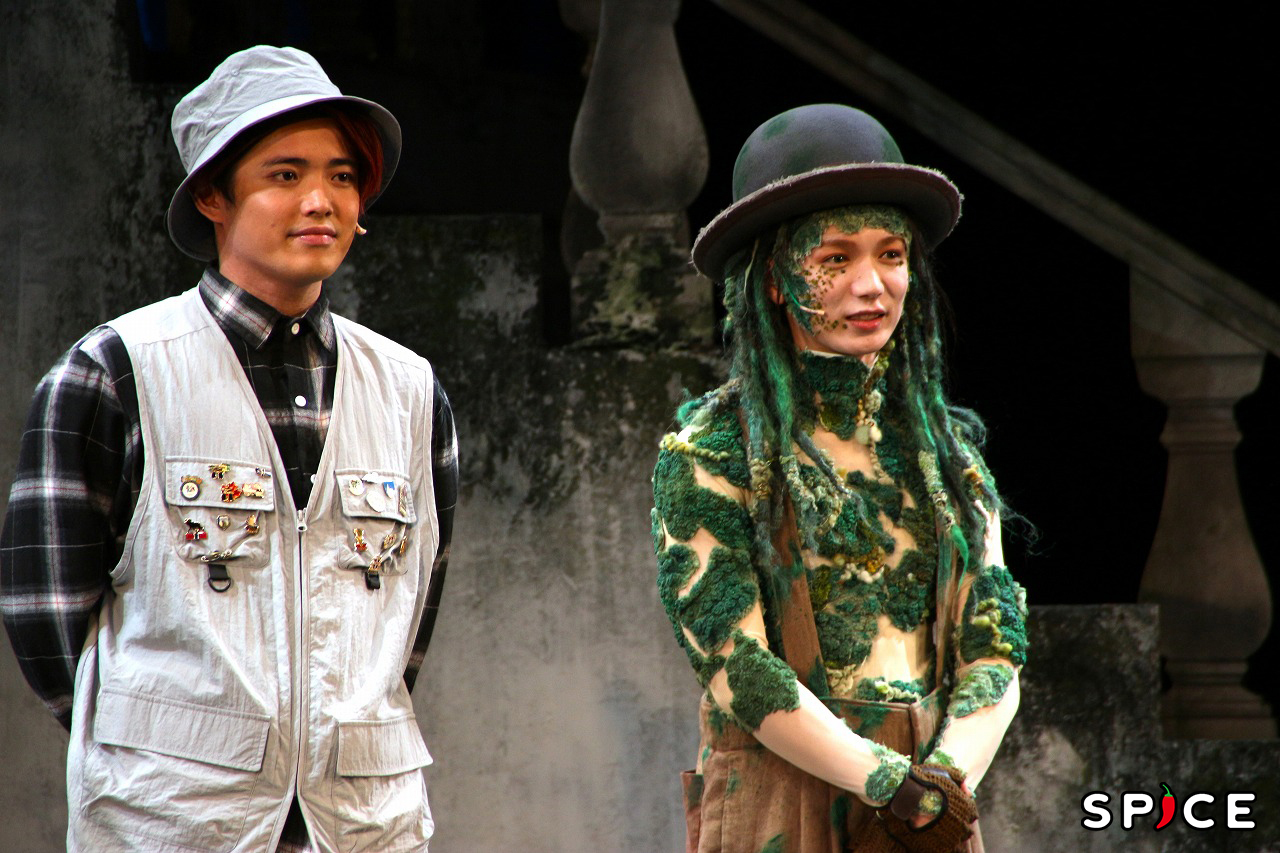 初日を翌日に控えた取材会では、少し緊張した様子の七五三掛が「明日初日です。今回初めて閑也とダブル主演ということで、緊張と同時にワクワクしていて、明日が楽しみです」と意気込み。カビ人間の“親友”であるハットを回すパフォーマンスについては「先生に教えてもらって難易度の高い技だったり、日常的にハットを使っているように見せるのに、2週間かかりました。帽子を持ち帰って、野球で言うところの素振りみたいに。1日50回やると決めていて、徐々にできるようになってからは、カビ人間のスイッチが入るようになりました」と自在に操れるようになるまでの苦労を明かしていた。ハットパフォーマンスの技術取得以外にも、「メイクが大変」と振り返り「カビメイクには1時間20分くらいかかるんです。メイクさんにも付けていただいているんですけど、自分でもこの小さいつぶつぶを付けているんですよ」と顔を指さし、細かく説明していた。