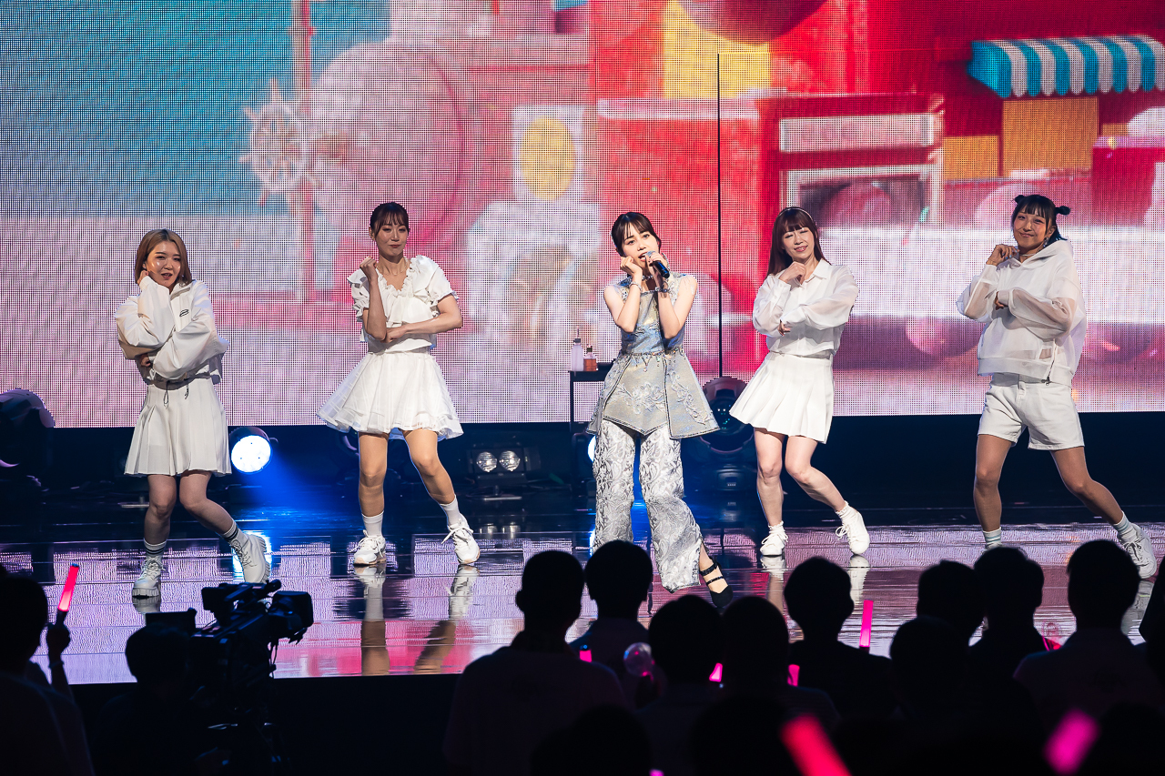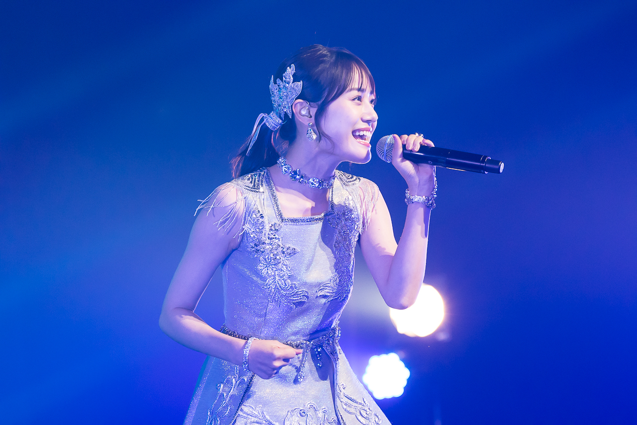 そして来場してくれたお客さんに両手を大きく広げて「ありがとうございま~す!」とごあいさつ。「初日始まりました。名古屋で!」で言った瞬間に大きな歓声が。それもそのはず、ツアーで愛知が加わったのは2023年のツアーからで、しかも初日になったのも今回が初めてということで、盛り上がらないわけがない。「ライブ初日ということでドキドキしていたけど、『みんなも何が始まるんだ?』とドキドキしたでしょ?」といたずらっぽく笑った。