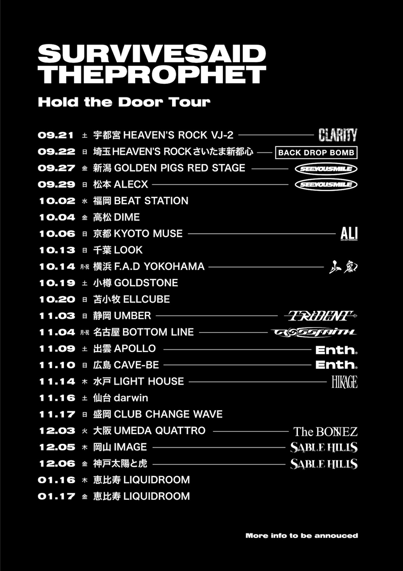 Survive Said The Prophet(通称:サバプロ)が、2024年9月より開催する全国ツアーのタイトルおよび、各地の対バン情報を解禁した。