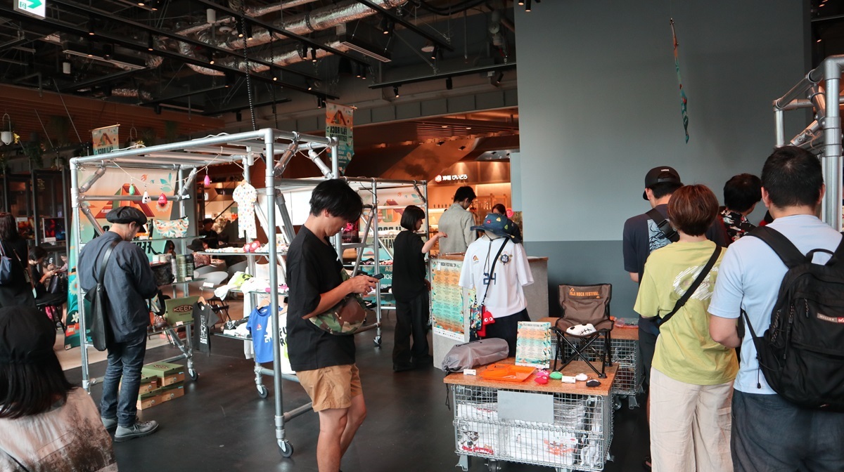 来場者には都内に住む人はもちろん、神奈川、千葉などの近郊都市からも大勢の人が参加されていて、来場目的として最も多く挙げられたのはフリーライブでしたが、オフィシャルグッズを購入しに来たという声も多く、また、「フジロックを感じたくて来ました!」と真っ先に口にされた人もいてとても印象的でした。