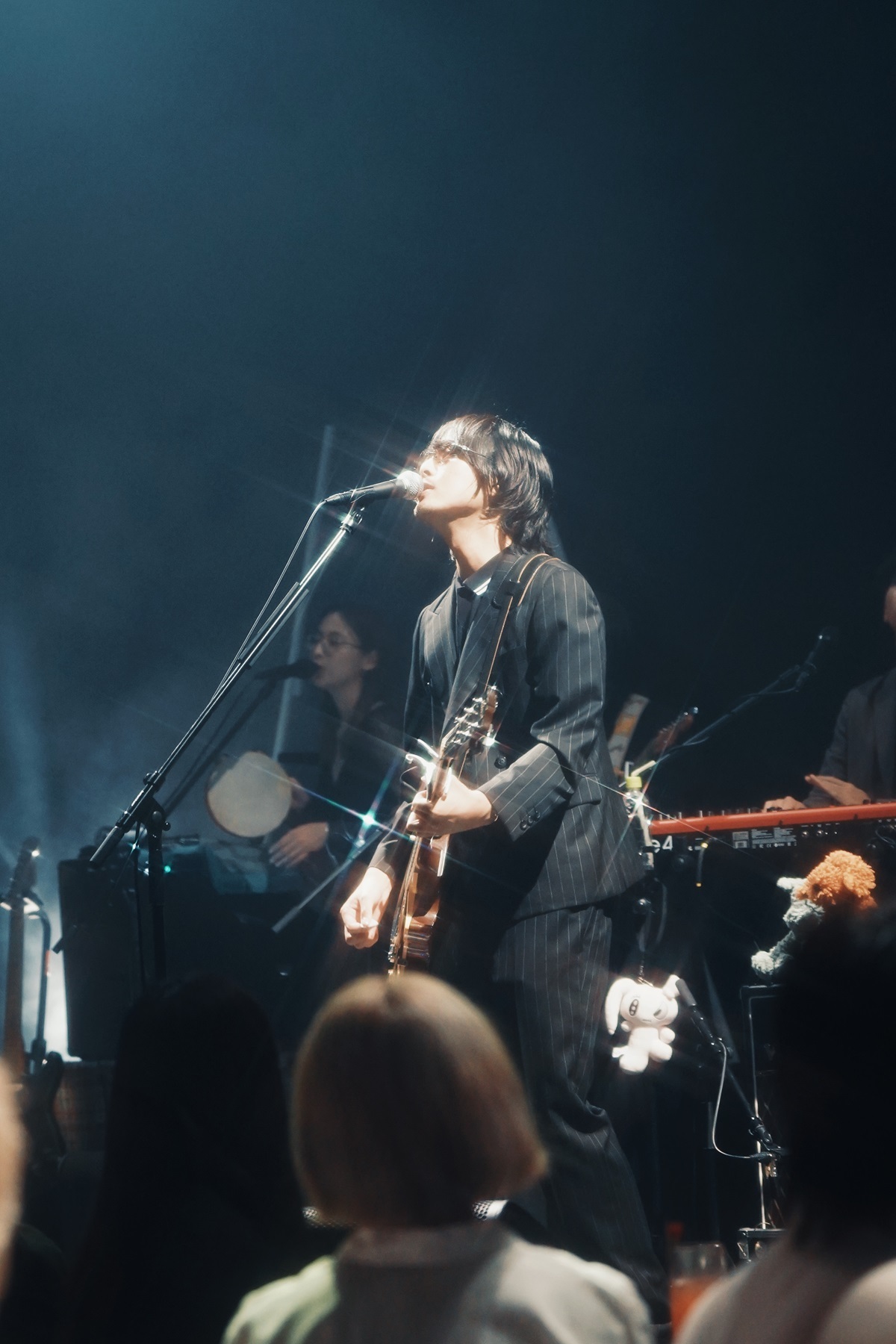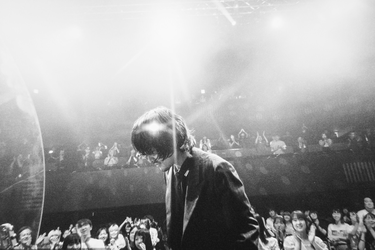 その一言に感慨を込めながら、バンドはゆったりとしたテンポのフォークロックナンバー「Wedding Song」と『最後の初恋』収録の8ビートのポップロックナンバー「ほんの気持ちですが!」を曲の振り幅を見せつけるように披露していく。後者では演奏がフェイドアウトしてから、またフェイドインするというメンバーの息がぴったりと合っていないとできない演出も楽しませる。