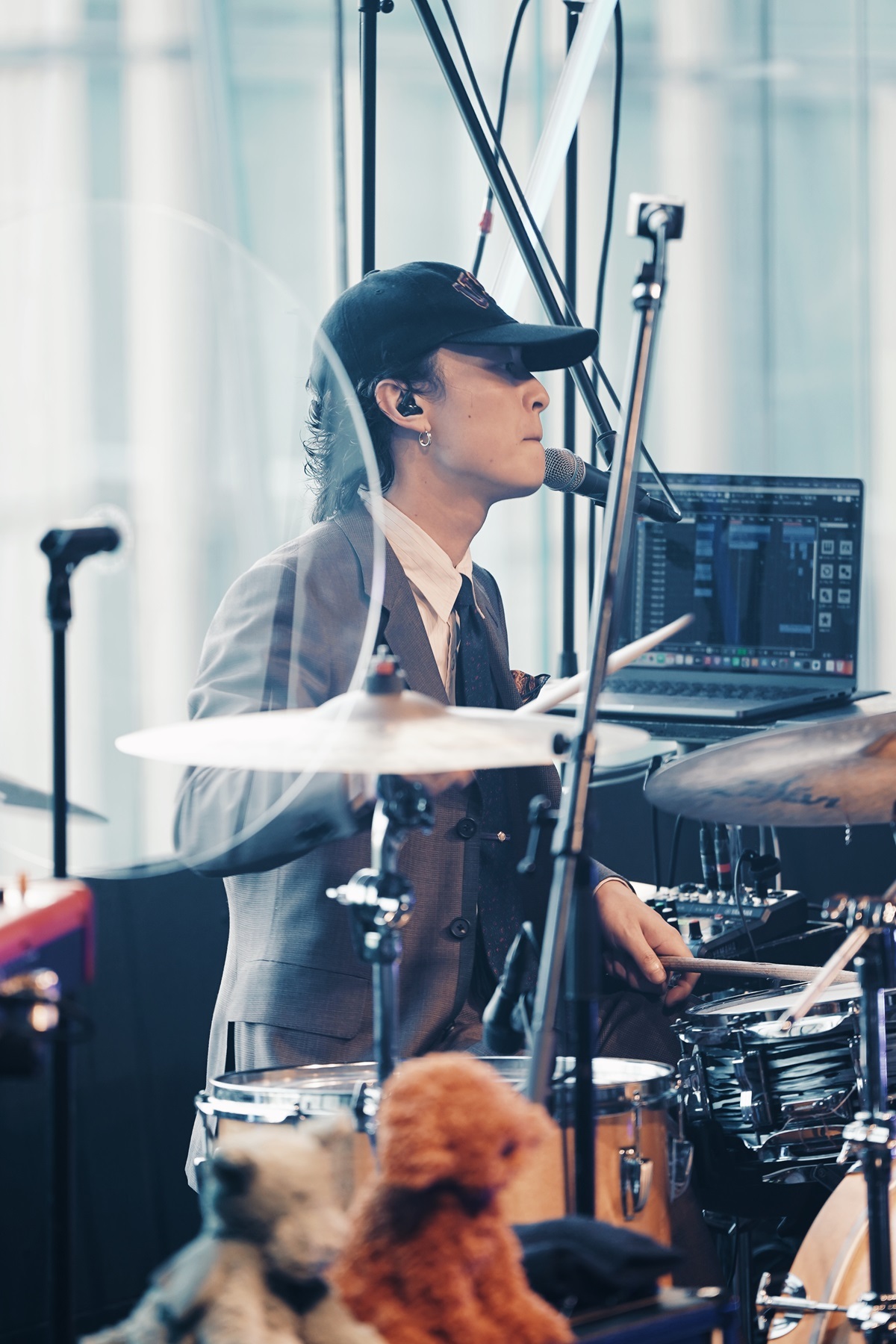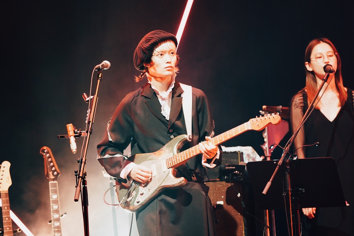 「2周年を迎え、いろいろ変わりゆく中で、うちの尾崎(リノ/Vo, Gt)も卒業しまして、本当に大変な期間が続きました。メンバーでリハに入って、(女性ボーカルのパートを試行錯誤する中)裏声でいろいろな曲をやってみたんですけど、これは人前ではできないということでライブも何本かキャンセルしました。そこから2周年を迎え、アルバムも出して、こうしてBillboard Live TOKYOでいっぱいのお客さんに囲まれてライブができることがすごく幸せです。あそこで心が折れて、やめなくてよかったと思います。本当にみなさんのおかげです。ありがとうございます」