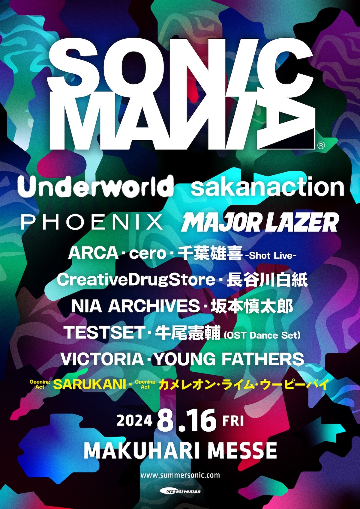 8月16日(金)に開催されるソニマニは、幕張メッセ内の3ステージをダンス・フロアに昇華させる、日本最大のオールナイトフェス。ソニマニでしか観られない多ジャンル且つ国内外の贅沢な出演者の組み合わせで、激しいビートを受け止めて好きなだけ踊るも良し、音と自身の世界に入り込み朝まで堪能するも良しといった、まさに全音楽”マニア”のためのフェスティバル。