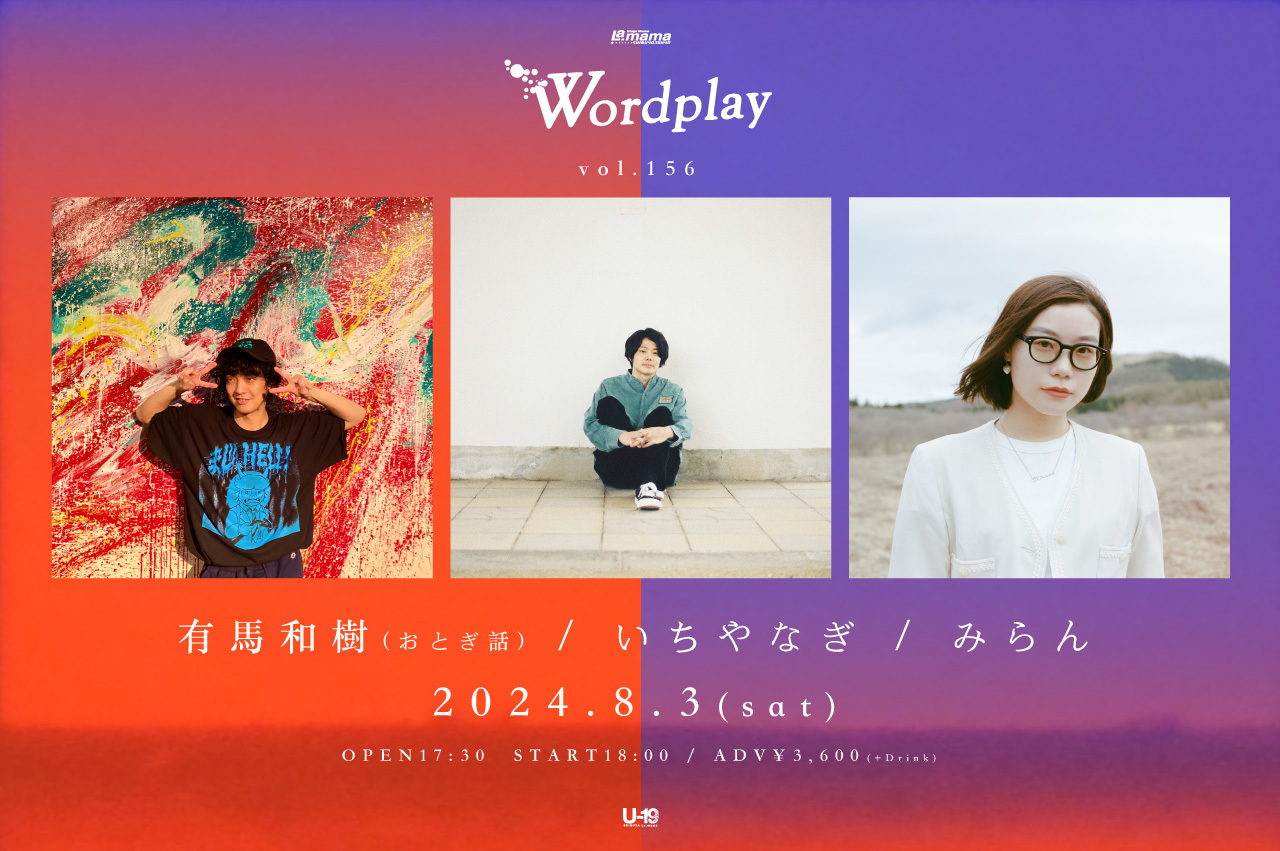 有馬和樹(おとぎ話)、いちやなぎ、みらんによる3マンライブ『Wordplay vol.156』が、8月3日(土)に渋谷La.mamaにて開催されることが発表された。