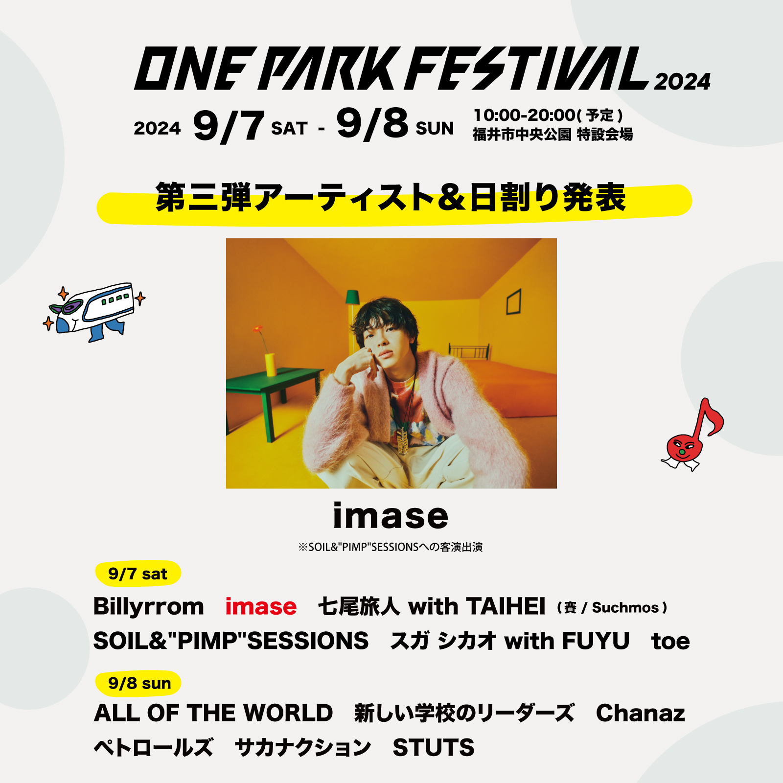 第3弾アーティストとして、imaseが出演することが明らかに。imaseは、9月7日(土)のSOIL&”PIMP”SESSIONSのステージに客演するとのこと。