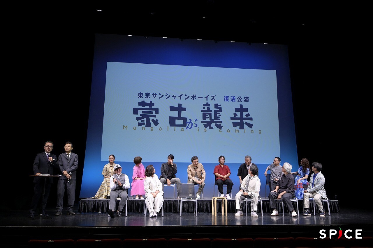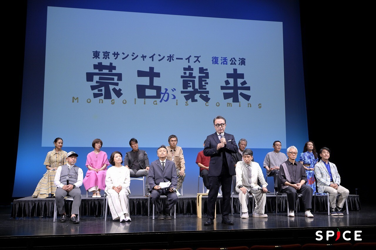 そんな東京サンシャインボーイズが、三谷幸喜書き下ろしの完全新作公演を2025年2月から東京・PARCO劇場を皮切りに岡山・京都・松本・仙台・札幌・大阪・豊橋・福岡・那覇の全国10会場で上演することが発表された。タイトルは『蒙古が襲来 Mongolia is coming』。どんな舞台になるのか、どんな思いでいるのか。2024年7月11日(木)、三谷幸喜や出演者らが電撃的に製作発表会見を行った。