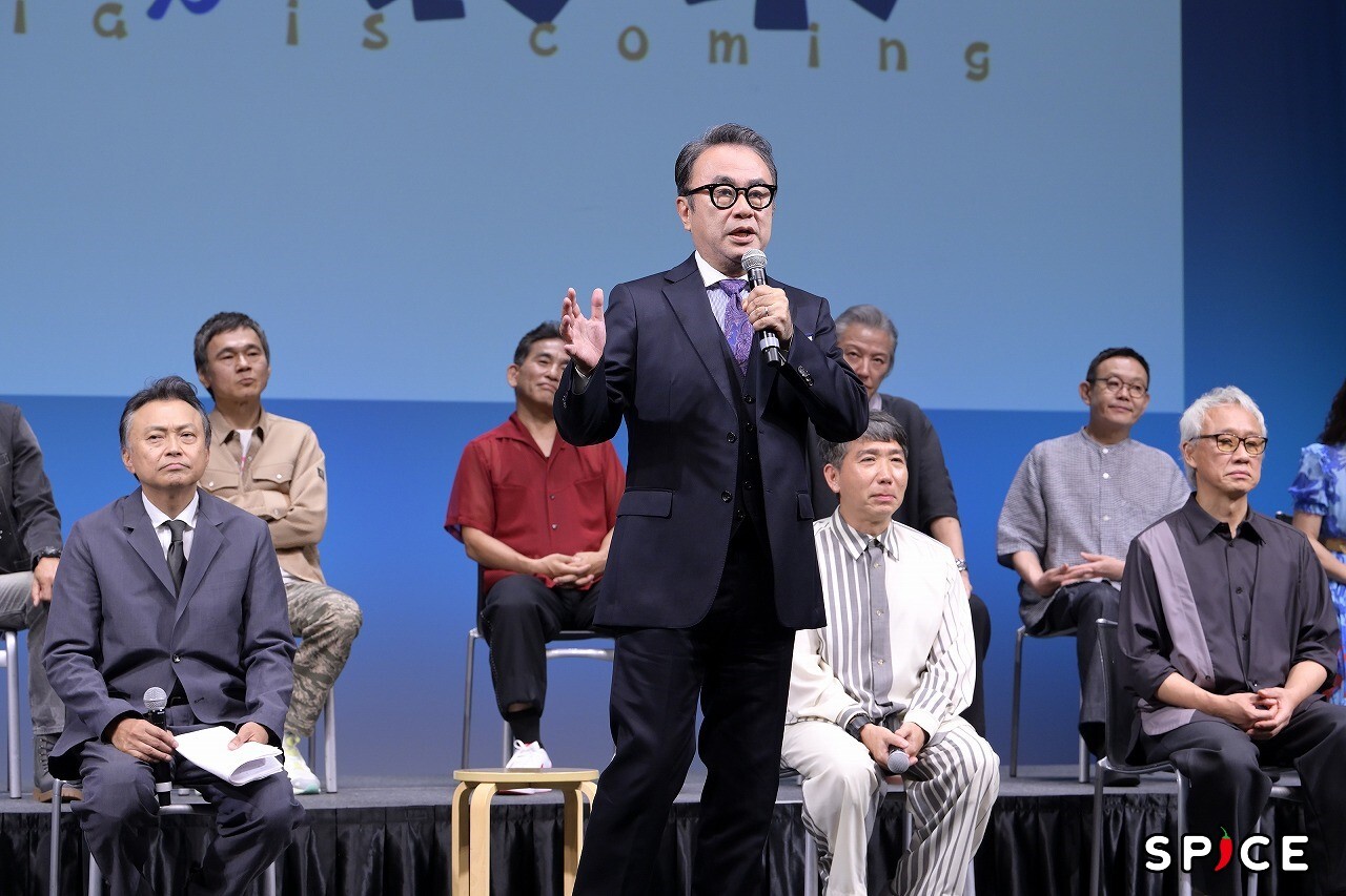 感無量です。30年前に劇団をほぼ解散した後に、シャレだろうなみたいな形で、「30年後にまたやろうぜ」とみんなで言っていたのが、だんだんと年数が経って、15年前に1回復活させて、もしかしたら本当にできそうだなと思って、こうやってみんなと会えると本当に嬉しいです。いい芝居をやろうと思っています。ここにいるメンバーは三谷の書く世界が大好きで、集まった奴らです。そいつらがもう1回集まって、三谷の作品を上演できるのは本当にありがたいし、嬉しいことなので、ぜひ楽しみにしていてください。