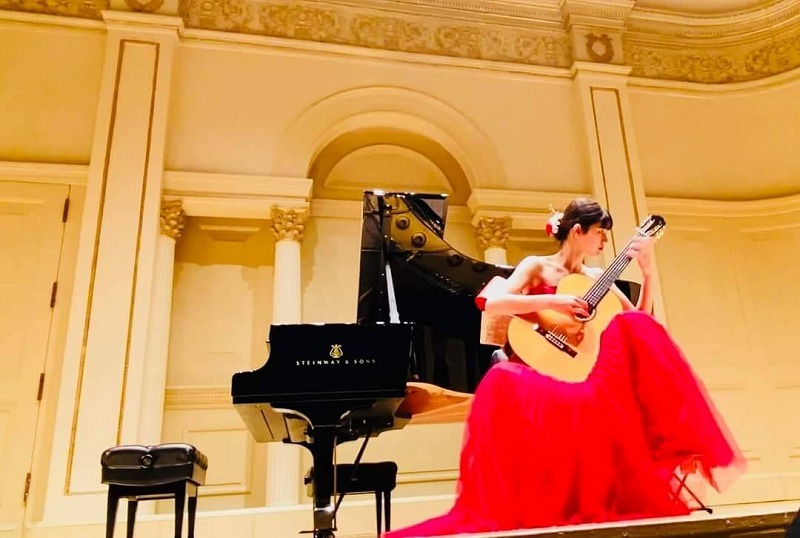 日々研鑽を積む一方で、行動制限期間ながら開催された数少ないコンクールにチャレンジした。女性ギタリストの先駆者・渡辺綾子の基金による「イブラ・グランド・アワード・ジャパン・コンクール」では「AYAKO WATANABE PRIZE」を受賞。翌22年、米国のカーネギーホールで、ヒメネスの「ルイス・アロンソの結婚」を演奏した。