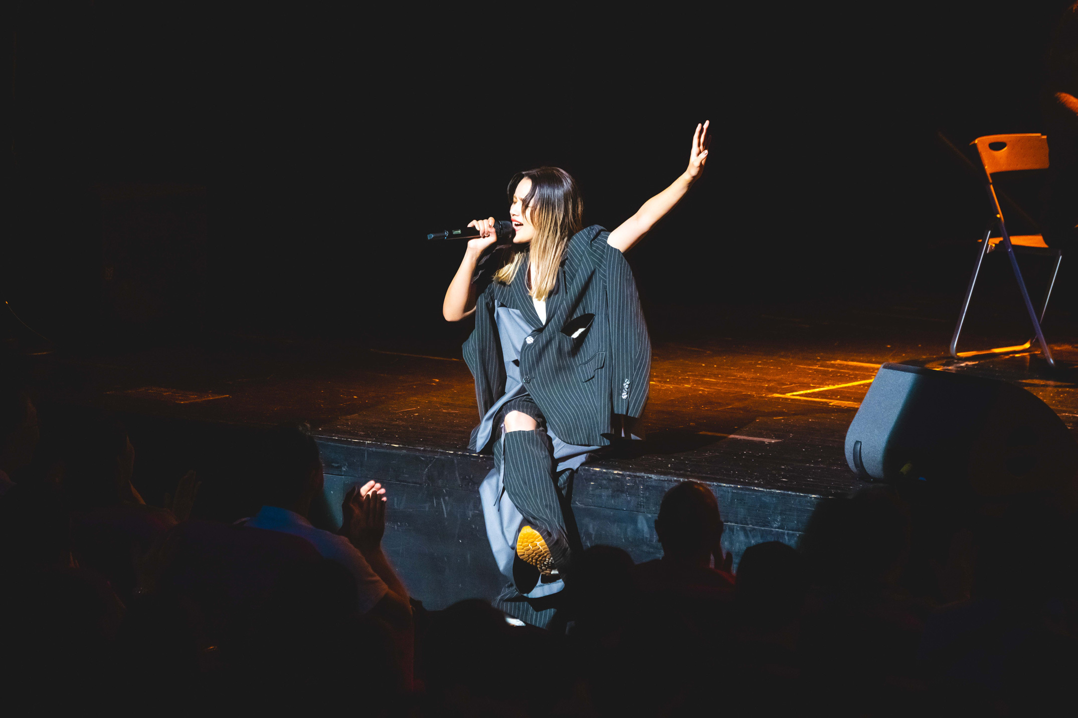 さらに、もう1曲の新曲「無無無無 -Nonsense Club-」を披露。「コロナ禍あたりから価値観のすり合わせが起きている気がしません? 正義と思っていたけど人を傷つけていた……みたいな。人のことを理解したり、マイノリティを考えることはとても大事だけど、色々考えてたら頭が爆発しそうだなと。二言で言うと「だるっ」と思ったんですよ(笑)。まともな人間でいなくていい時間があってもいいんじゃないかと思って、何もかも忘れて4分だけバカでもよくない?という曲を作りました」と明るく曲紹介。SNSでも「Style 京to琉のパーティーソング」と表現していたように、軽快なイントロがクラップを導き、パワフルでキュートなサウンドに客席は身体を揺らす。Anlyは<踊ってみせて>でくるんと回転し、自由に動いてステージ後方に絡みにいったり、ステージの縁に腰かけたりと、この時間をエンジョイ。クラップとAnlyの歌声のみになったパートは、彼女の魂が響いてくるようで印象的だった。