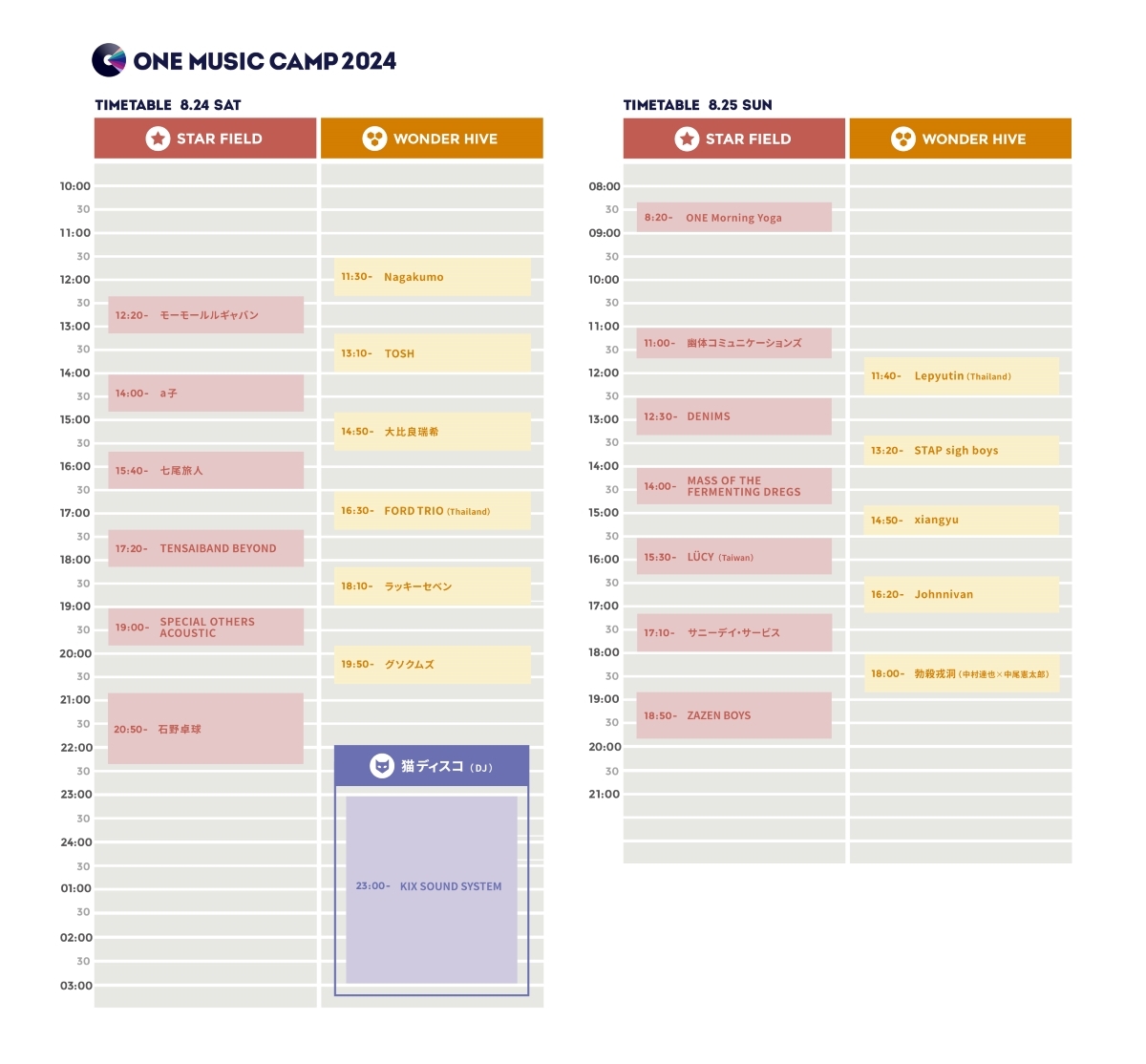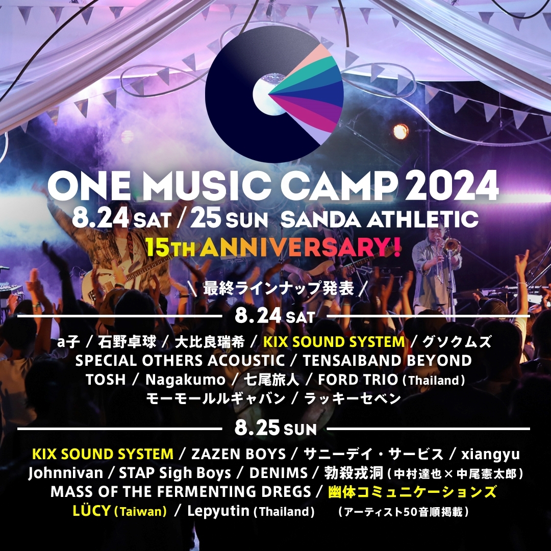 8月24日(土)、25日(日)に兵庫県三田アスレチック野外ステージにて開催される『ONE MUSIC CAMP 2024』のタイムテーブルと最終ラインナップが発表された。
