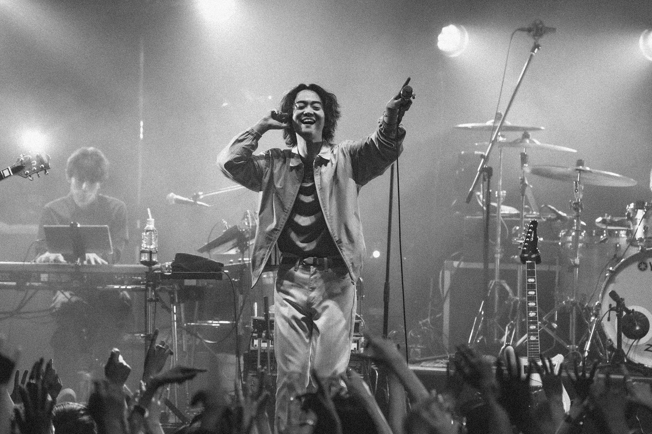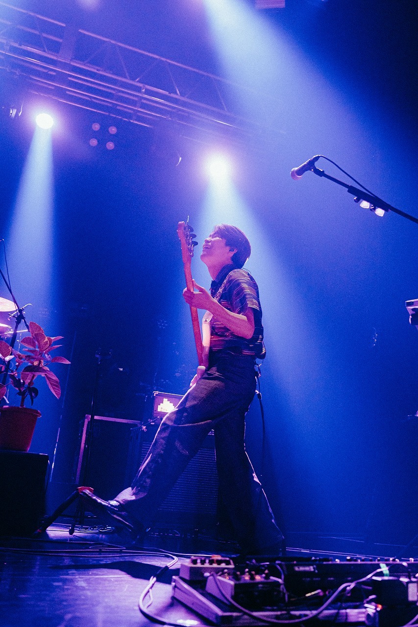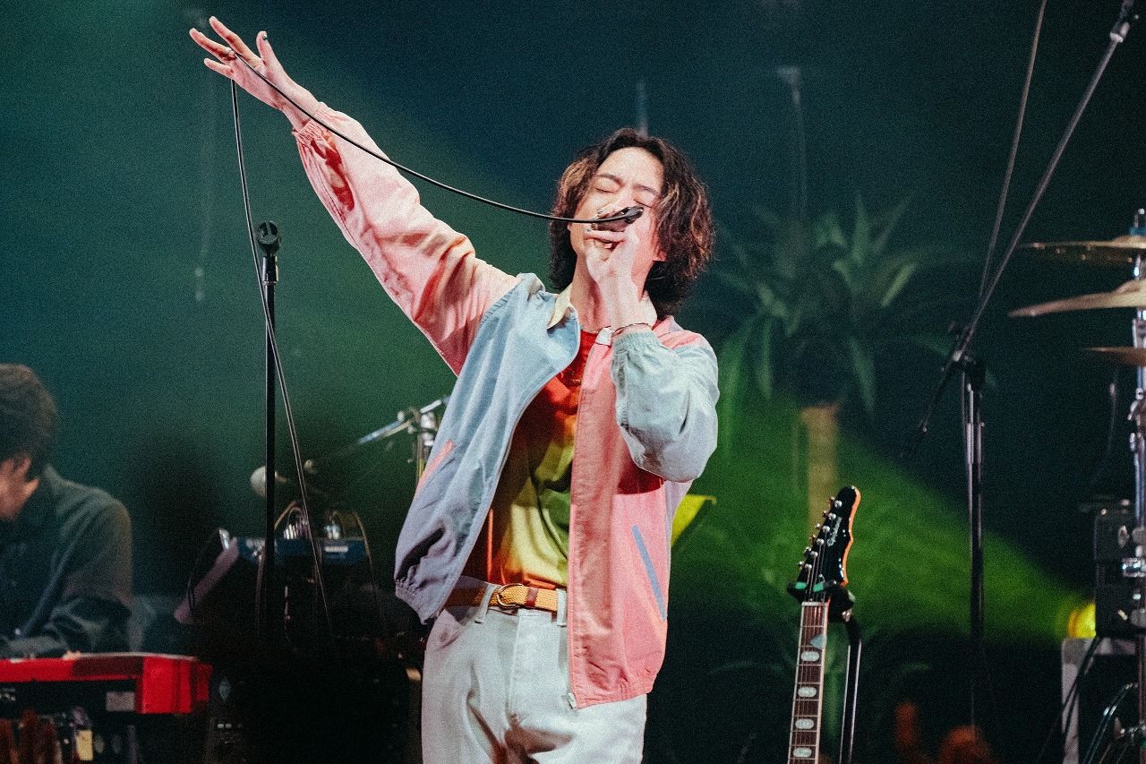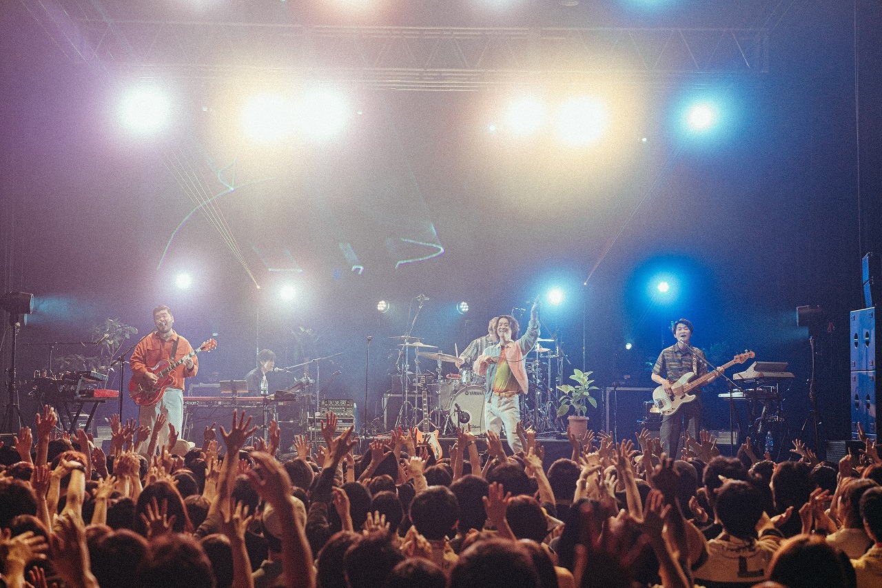 無敵のサマーチューン「Perfect Vacation」で幕を開けたステージは、クラップとダンスと大合唱でいきなりクライマックスへ。ステージ上には観葉植物、レーザービームで描かれたバンドロゴがまぶしい。飛んだり跳ねたり回ったり煽ったり、HIROSHIの観客を巻き込むパワーが凄い。HAYATO(Dr)の安定感たっぷりのストイックなドラムがかっこいい。SHUN(Ba)の満面の笑顔とアグレッシブな動きがいい。WATARU(Gt,Key)のがっちり固めた横分けリーゼントが決まってる。サポートキーボードの山本健太が、完璧な職人技でバンドを支える。歌舞伎町の地下のライブハウスを、夏のBREEZEが通り抜ける。