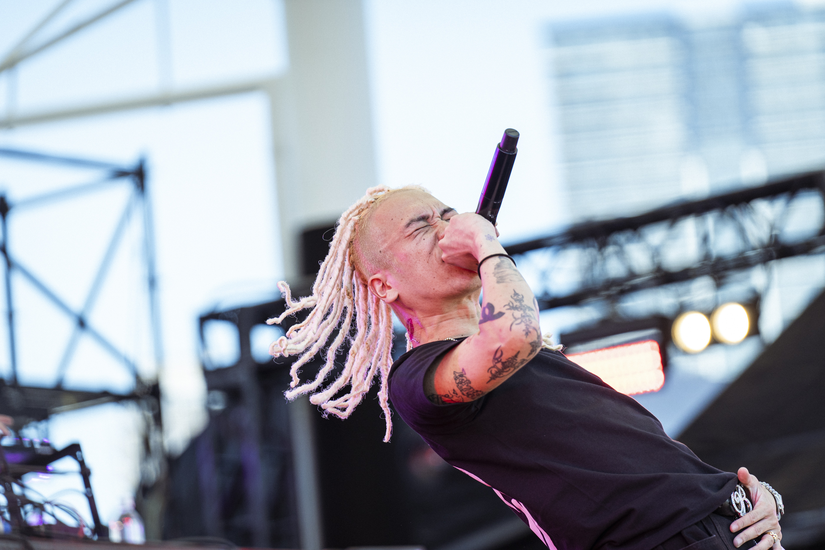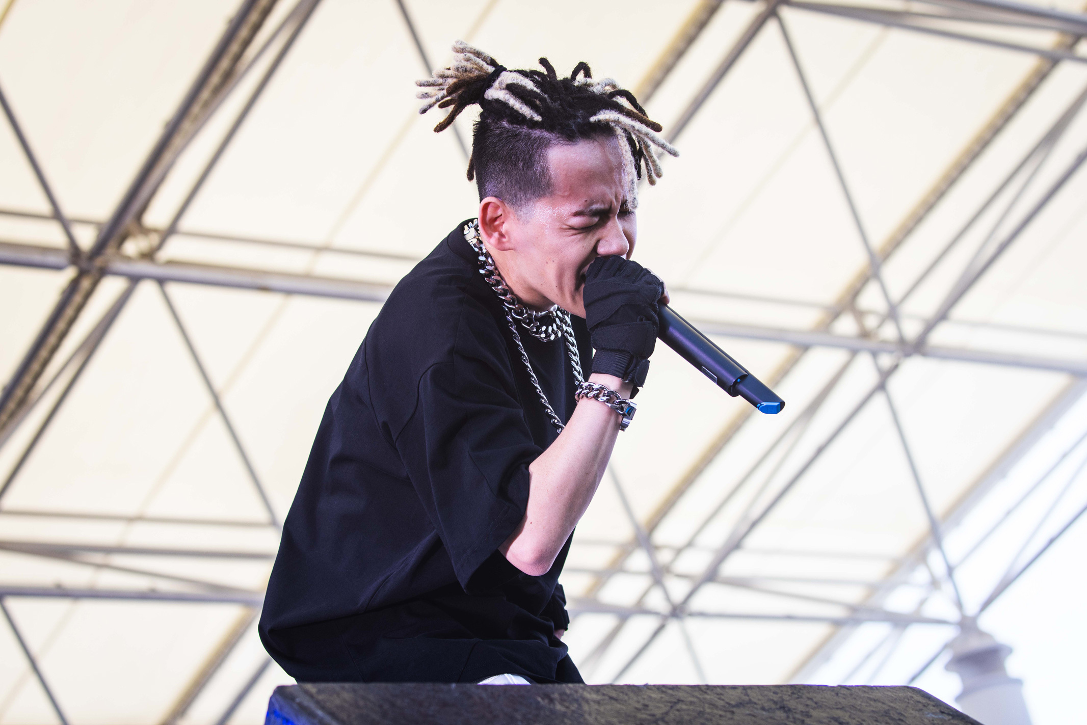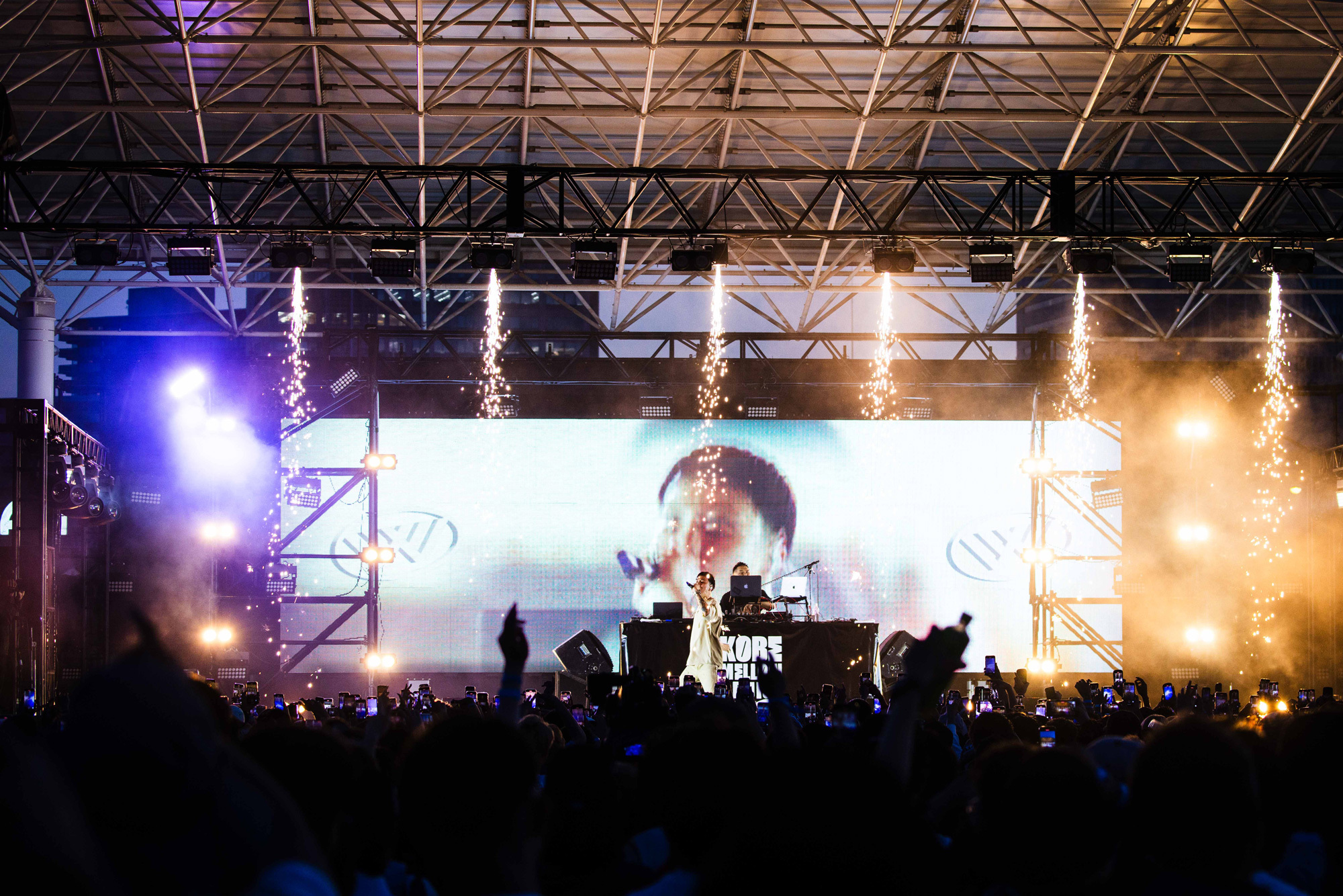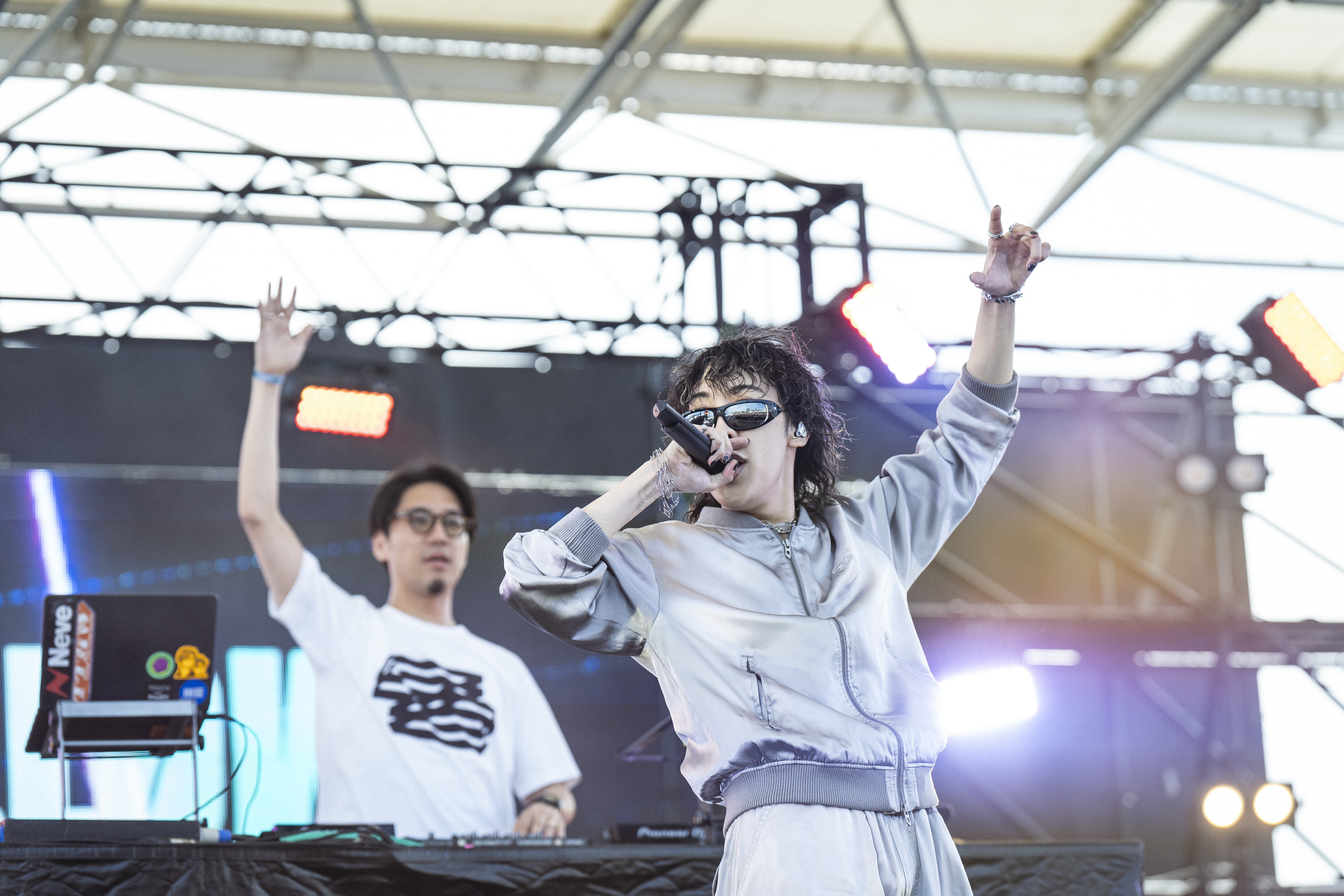 初日のトリを務めたWILYWNKAはハイテンションでステージに駆け込むと、自己紹介代わりと、今年2月にリリースされた新曲「Excuse Me」でその存在感を誇示。完成度の高いリリックや中毒性高めなフロウ、スリリングなトラックと、大勢の観客を前にどれだけ大きなインパクトを残せるか……。その気迫は、続く「90‘s Baby」「That’s Me」で“WILYWNKA”の本質を余すことなく見せつけてくれた。この日は5月にリリースされた4thアルバム『90‘s Baby』を中心としたステージ。「新曲いっぱい持ってきたんで!」と、「PUSH ’N‘ PUSH」ではスケボーの“プッシュ”よろしく、じわじわとスピードを上げていくようなトラックに煽られ、特効の火花が飛び散る「油断大敵」では鬼気迫るビートに興奮が止まらない。