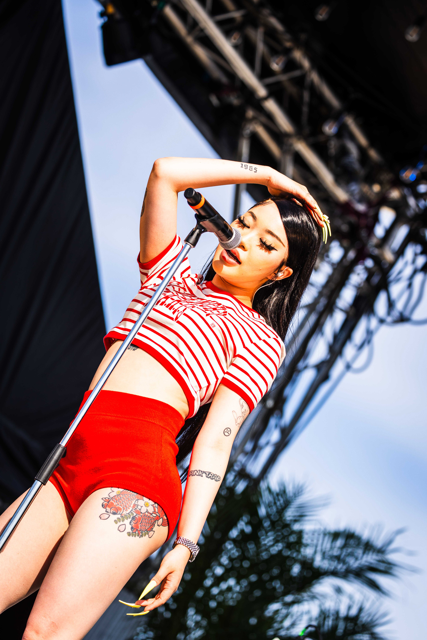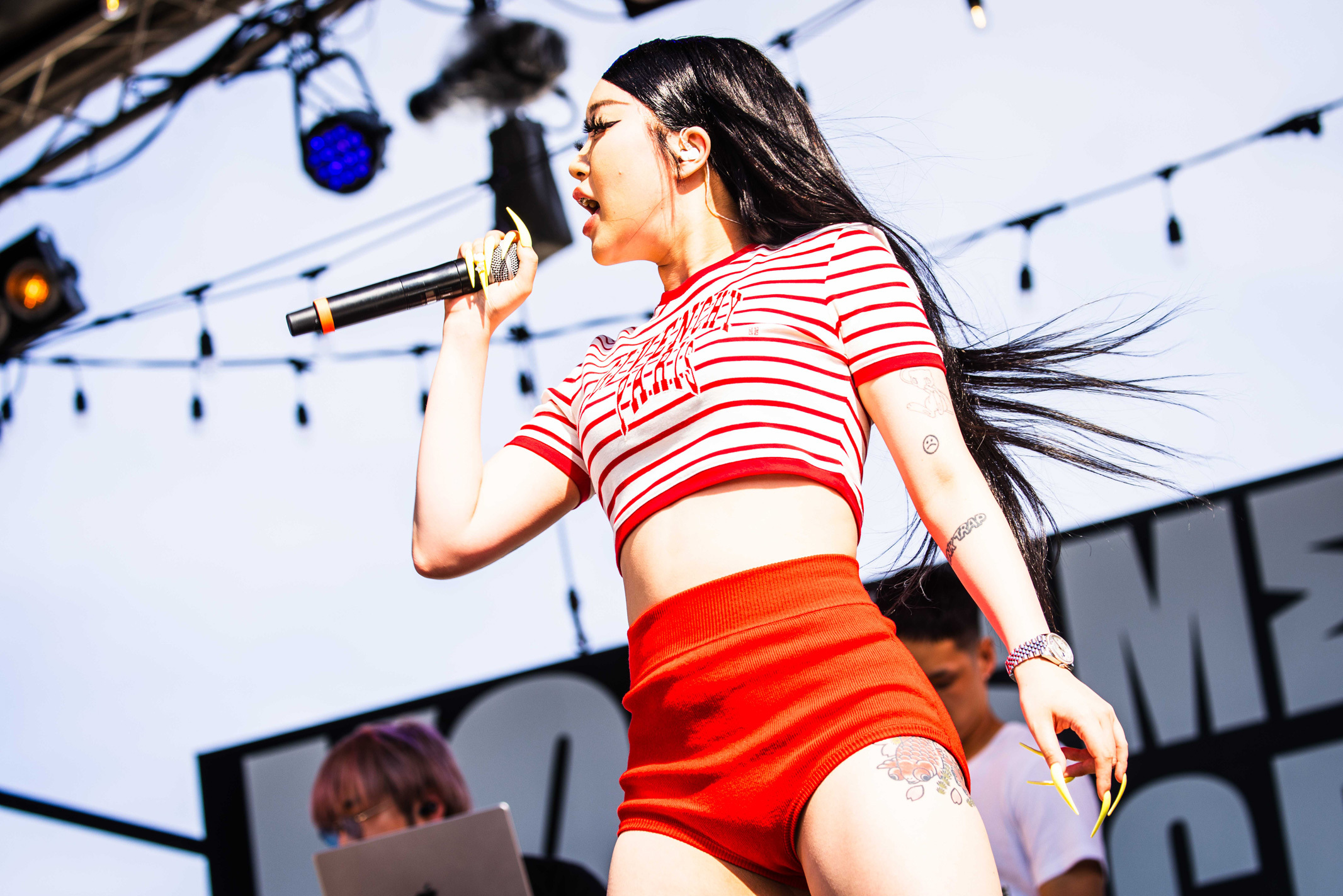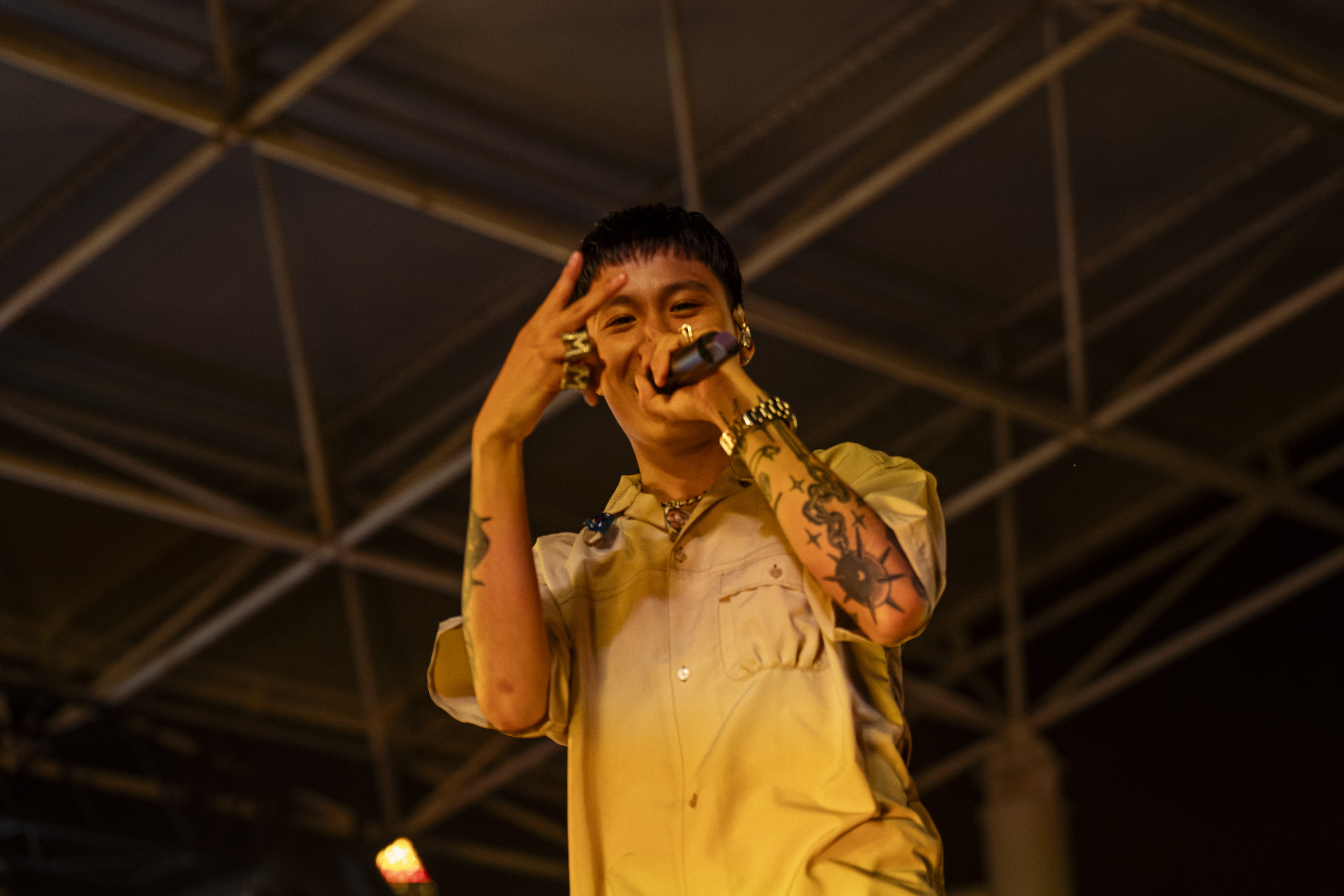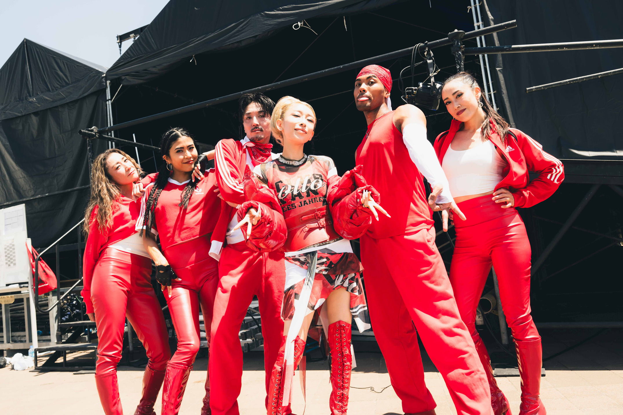 ふさふさのつけまに超ロングのスカルプネイル、日本人離れしたルックスと思わず目が釘付けになるファッションで登場したのがフィメールMC・Elle Teresaだ。中毒性のある甘い声、気だるげに操るフロウで「GAL」「Bubble」と、ギャルいリリック満載の楽曲でオーディエンスを虜に。色気たっぷりにヒップラインをくねらせれば、同性から「可愛い!」の歓声も。「Nail Sounds」「Tsukema」は遊び心いっぱいのリリックが耳から離れない。「朝まで楽しめるくらい楽しい! みんなの愛を見せてください」と、ラスト「6 AM」「LOVE」まで、この日も”可愛い”をまんま具現化したスタイルで魅せてくれた。