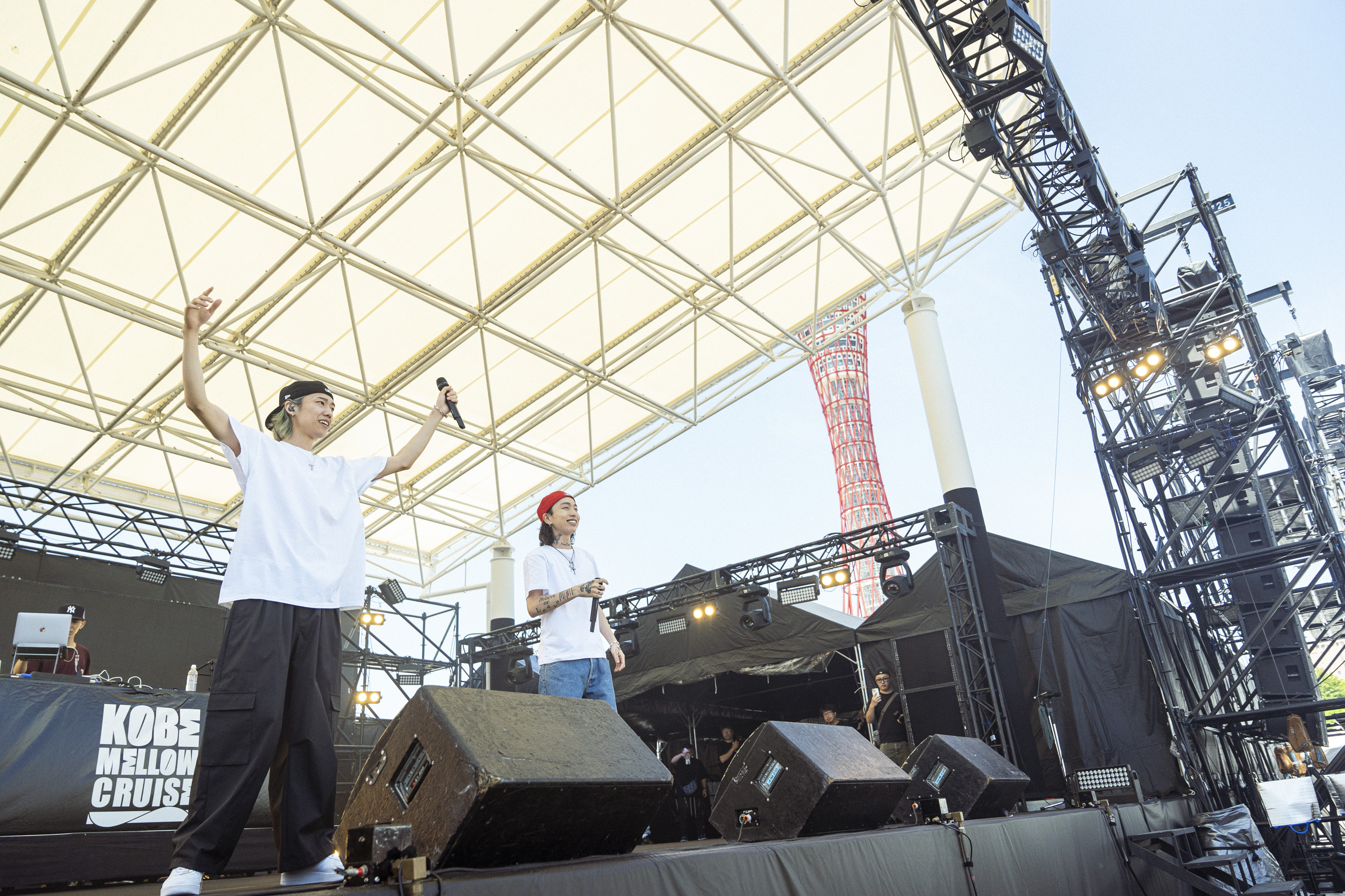 『KOBE MELLOW CRUISE 2024』が今年も5月25日(土)、26日(日)の2日間にわたり、神戸・神戸メリケンパーク内の特設会場で開催された。「文化を発信してきた港町・神戸を象徴するポートタワーの麓、メリケンパークで開催する新たな都市型音楽フェス」として、2022年にスタートし、今年で3回目の開催を迎える。音楽はもちろん、アートやファッション、グルメなど様々なカルチャーをクルージングしながら贅沢な時間が楽しめる都市型野外音楽イベントとして、人気を集めている。今年も日本のヒップホップシーンを牽引する豪華ラインナップが集結。初夏のような快晴の中、最高のグルーヴが生まれた初日のステージをピックアップしてレポートする。