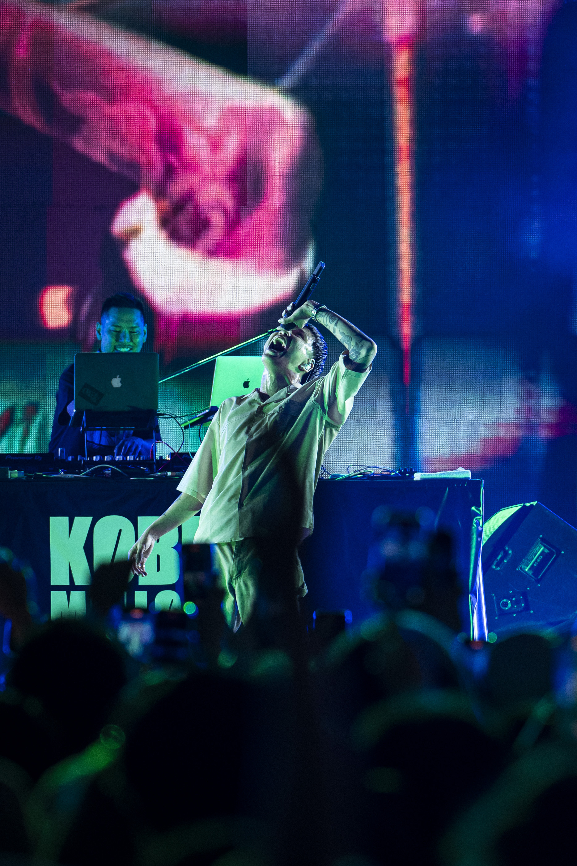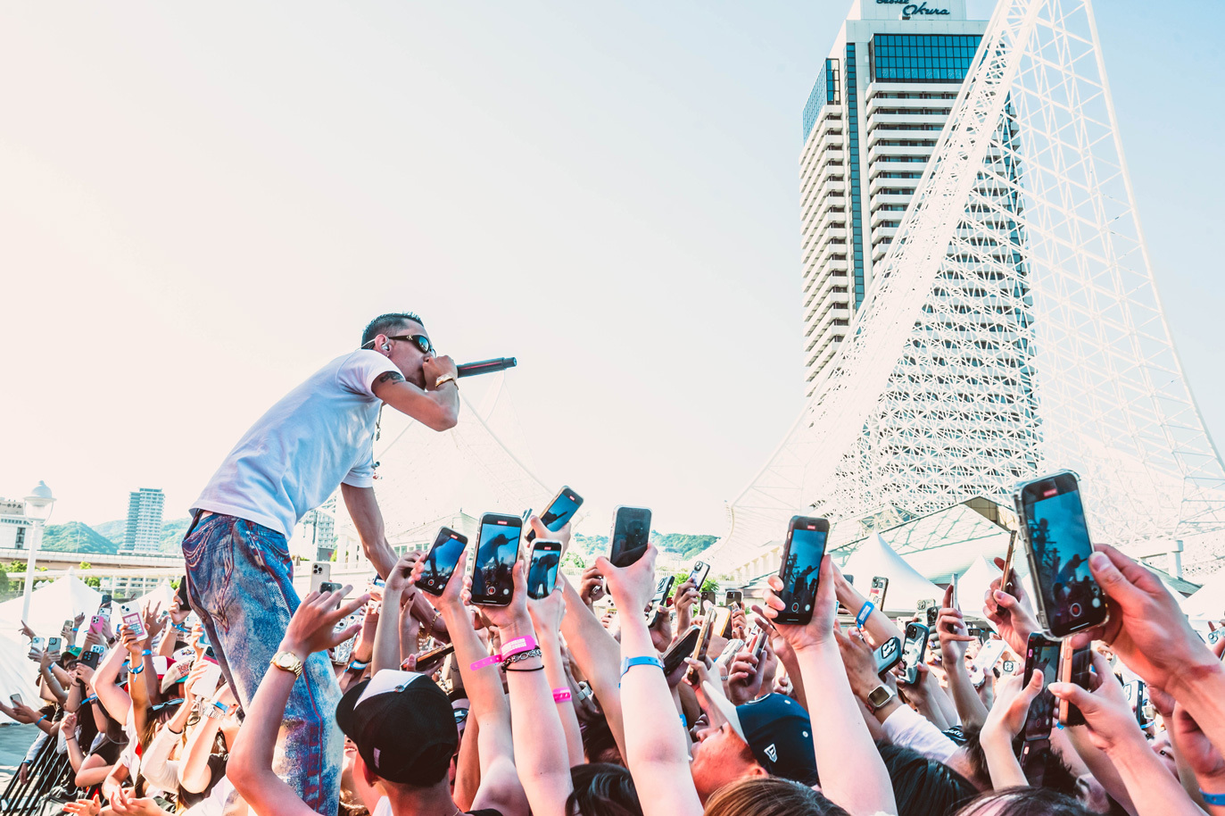 オープニングアクトは「チーム友達 (Dirty Kansai Remix)」で話題を集める、兵庫・西宮出身のYoung Coco。ワールドワイドに活躍する注目のラッパーというだけあって、観客の注目度は高く「一発目からブチ上がれるっていう人、一緒に楽しもうや! 日頃の鬱憤晴らしましょ!」とステージを飛び出し、フロアギリギリまで攻め込みながら「Osaka to Kobe」「チーム友達 (Dirty Kansai Remix)」などで存在感をアピール。