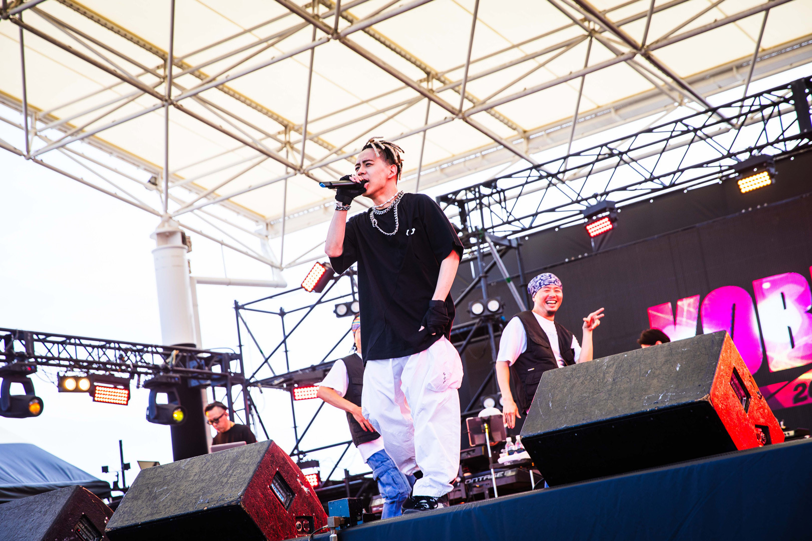 美味しいとこ取りな、ショートチューンの連打で終始オーディエンスをアゲ続けたIO。リリックのワードセンスも抜群な「Honto」、ピアノの旋律を落とし込んだトラックが洒落てる「左利きのBenz」など、どれもオーディエンスの好反応が止まらない。「Your Breeze」は夕暮れの海岸線をクルーズするような、とろけそうな心地よいビートに恍惚の表情を見せて踊るオーディエンスも多い。『メロクル』のロケーションの良さがライブのテンションを一層高めてくれる。また、『メロクル』の楽しみのひとつといえば客演。Kohjiyaとの「Racin’」、MonyHorseとの「City of Dreams」「TOKYO KIDS 」など、贅沢なステージ&極上のナンバーで観客をヒートアップさせる。