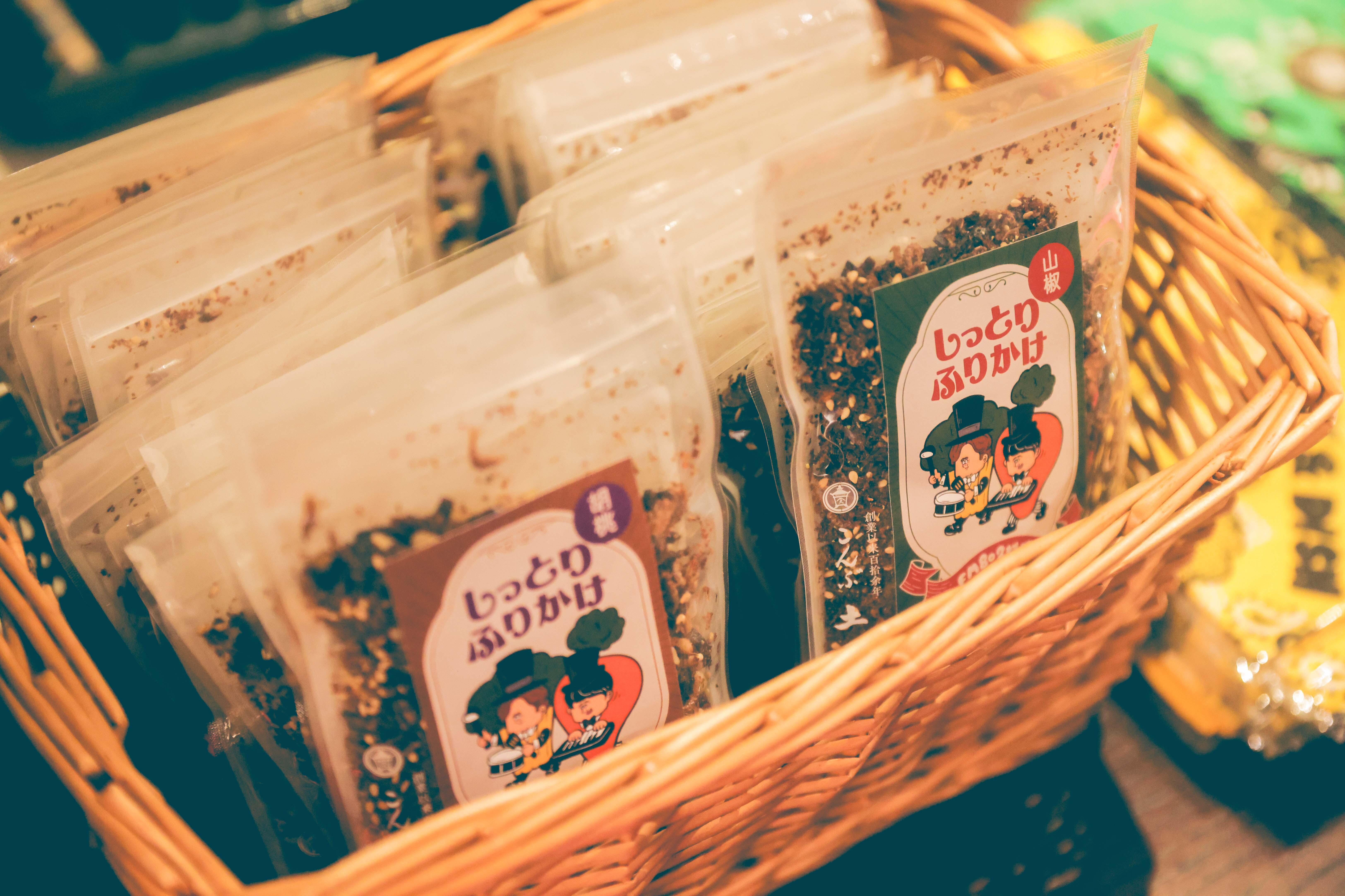 入口のグッズ売り場では、料理部オリジナルバンダナのほかに、明治36年創業の乾物店「こんぶ土居」(大阪・谷町六丁目)とコラボしたオリジナルふりかけ(「胡桃」「山椒」の2種セット)も販売。かわいいパッケージも好評で、開場早々に完売となった。ふたりがイベント開催前の4月に試作した様子はこちら。(https://spice.eplus.jp/articles/328673)