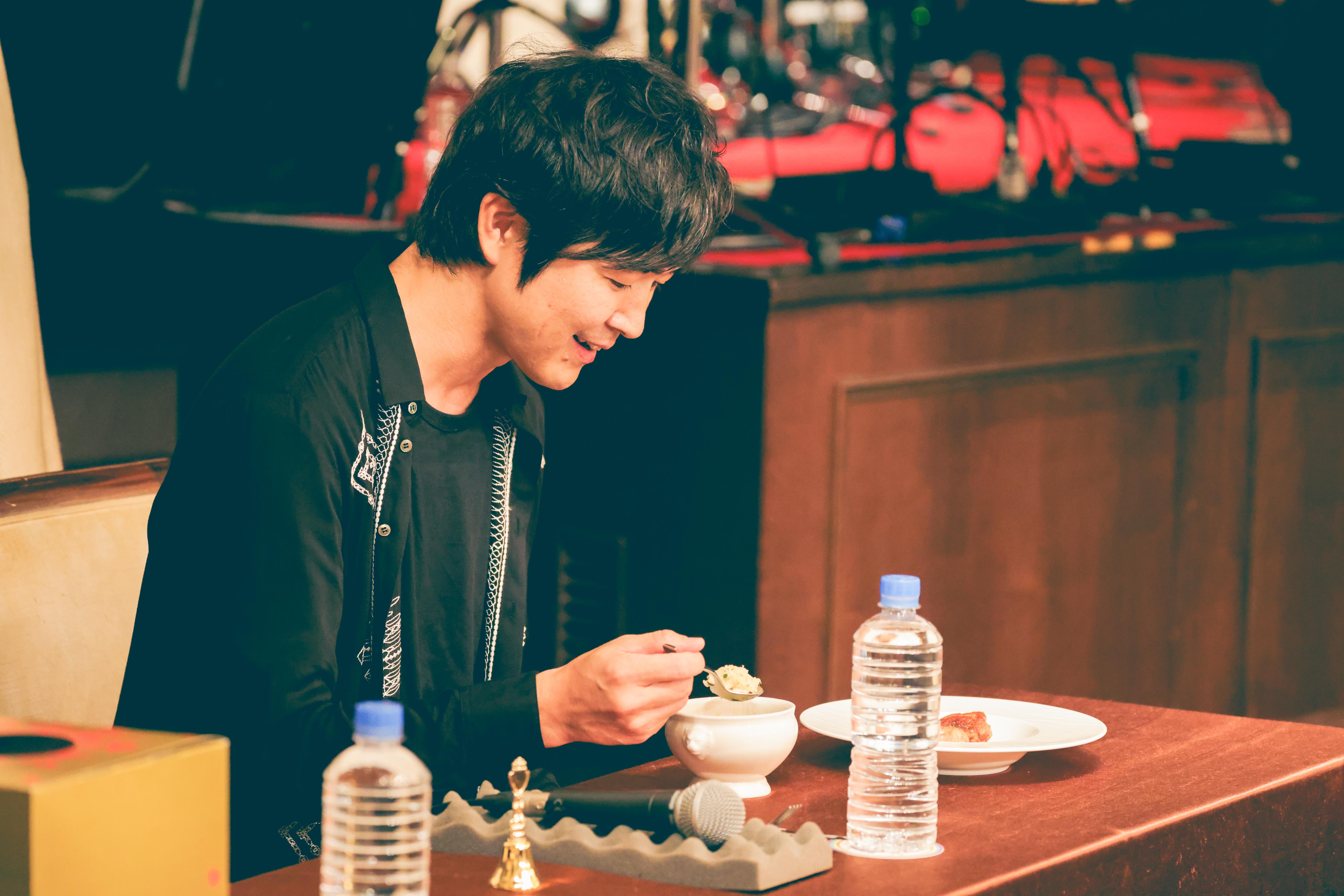 料理がサーブされると「赤ワイン・白ワインの食欲をそそる色と香りがたまらないです」と笑顔を見せる藤巻。みんなに注目されて少し緊張しながら、まずは伊地知のリゾットから実食。「アルデンテの食感がすばらしくておいしい!ゆっくりとワインを飲みながらいただきたいです」としみじみと味わっていた。続いて、金澤の赤ワイン煮を口にすると、「ソースの爽やかな酸味と鶏の脂の旨味が合います。レーズンと一緒に食べるのは初めてで新鮮。複雑なコードを使った曲作りのようでダイちゃんっぽい」とコメント。音楽的な視点を交えた感想に大きな拍手がおこった。