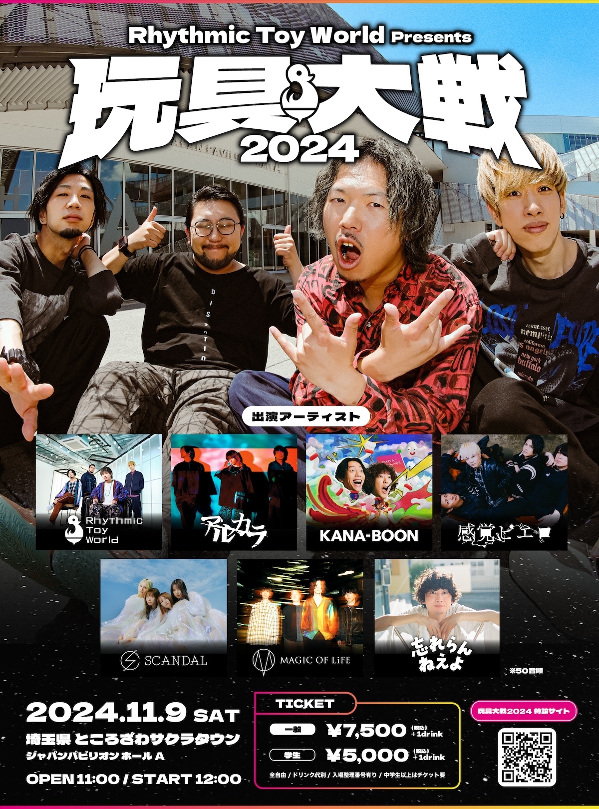 今年結成15周年を迎えるロックバンド・Rhythmic Toy Worldが、11月9日(土)に埼玉県・ところざわサクラタウン・ジャパンパビリオン ホールAで開催する初主催フェス『玩具大戦 2024』の全ラインナップを発表した。