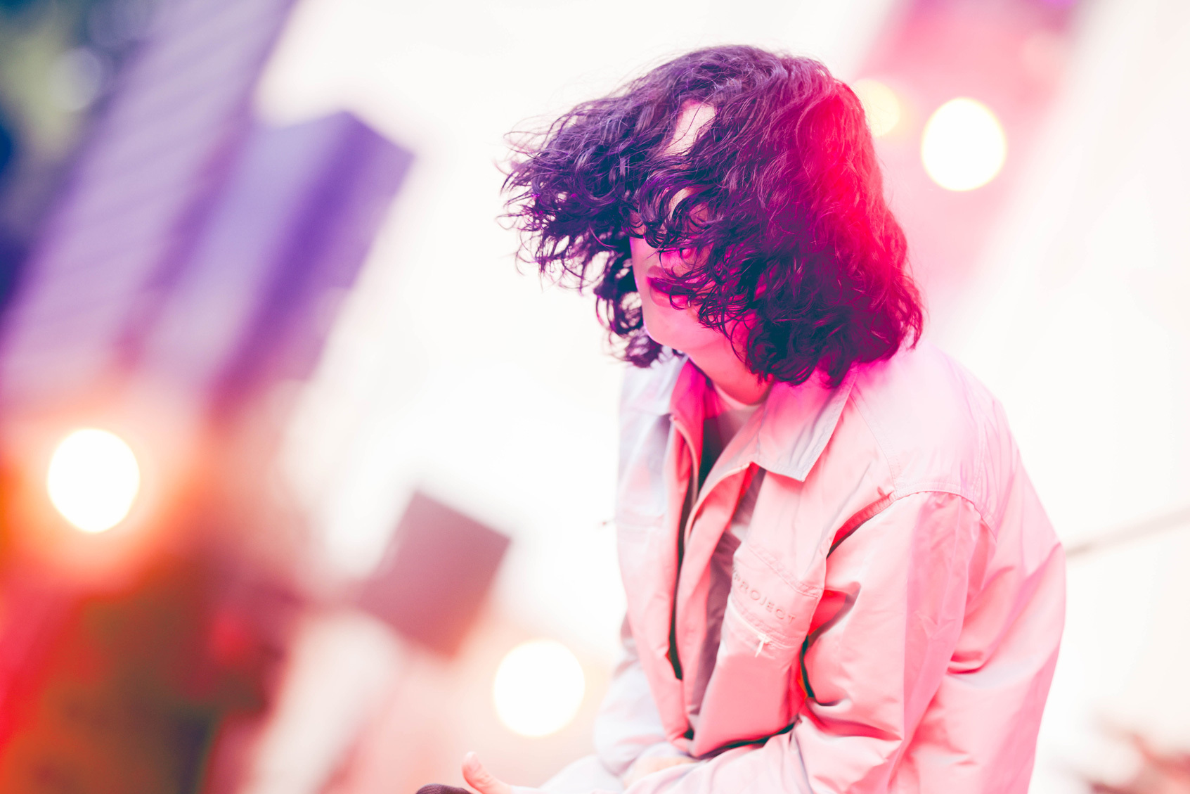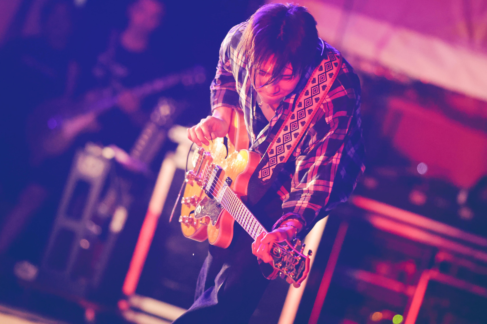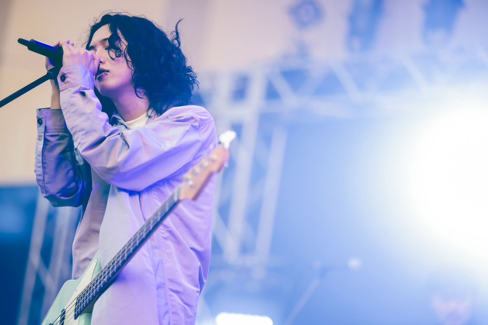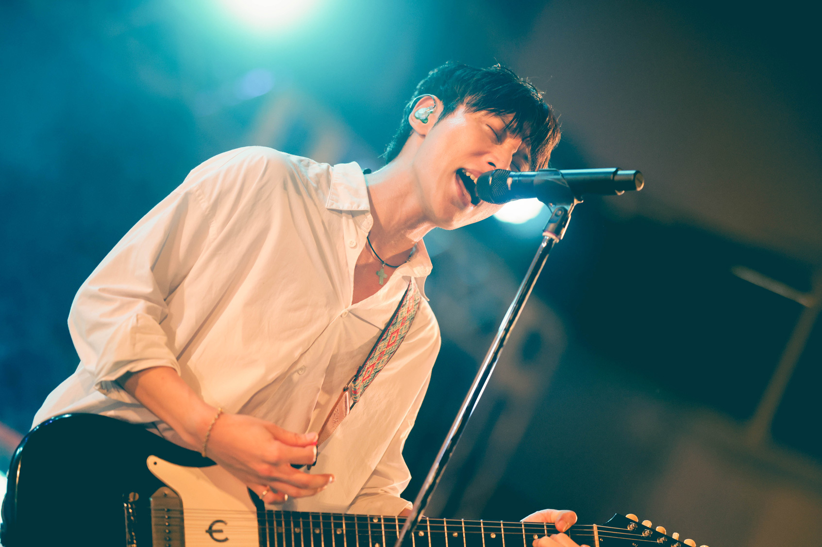 「暑いから倒れないようにしてくださいマジで! 本当は今頃もうちょい暗くなっているつもりでセトリを組んでいたんですが、まだまだ昼ですね(笑)」と、19時前でも明るい真夏の野外ライブ日和に歌い上げた「白無垢」は、大人の色香漂う絶妙なスパイスに。「波に名前をつけること、僕らの呼吸に終わりがあること。」ではベースを弾きながら歌うなど、ボーカルとソングライティングに留まらないマルチな才能でも見る者を魅了。その後も、エレクトロなビートで身も心も踊らせる「Moonthief」、エッジィなギターリフともどもブチ上げる「聖者の行進」と、無双状態で突き進む!