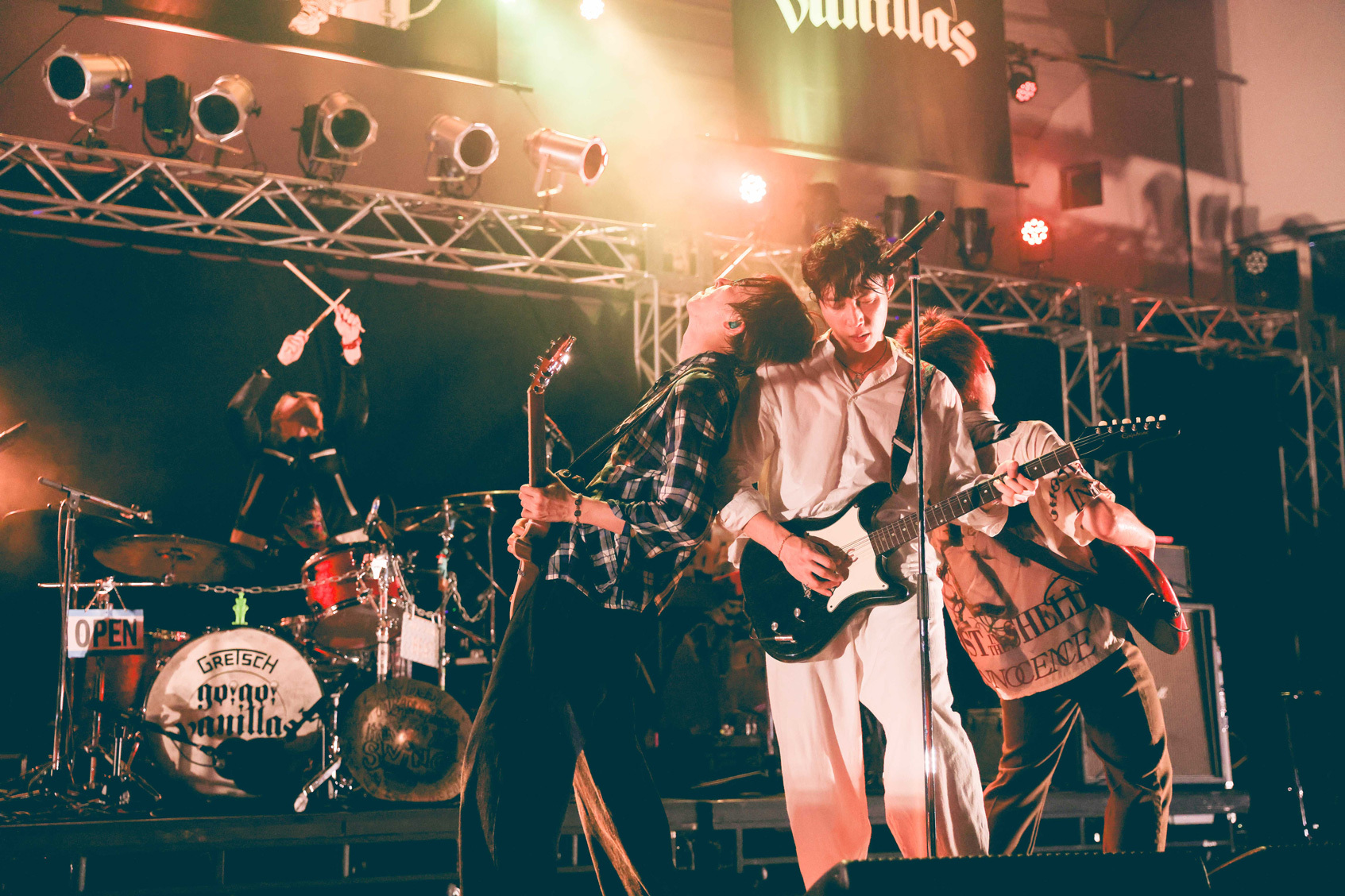 「すげー後ろの方までよく見えるわ、ありがとう! バニラズって純粋な音楽フリークが聴いている印象があって。昔からブレていないし、ずっとルーツミュージックが元にあって、それを自分たちが本当に好きな形で演奏している。その真っすぐさが、カッコいい背中だなと思っていました。きっとバニラズを好きな方もそうなんでしょう。そういう人たちと一緒にライブができるのは、とってもありがたいことだなと。両者とも末永く、たくさん聴いてください、よろしくお願いします」というMCには、ひときわ大きな拍手が巻き起こる。