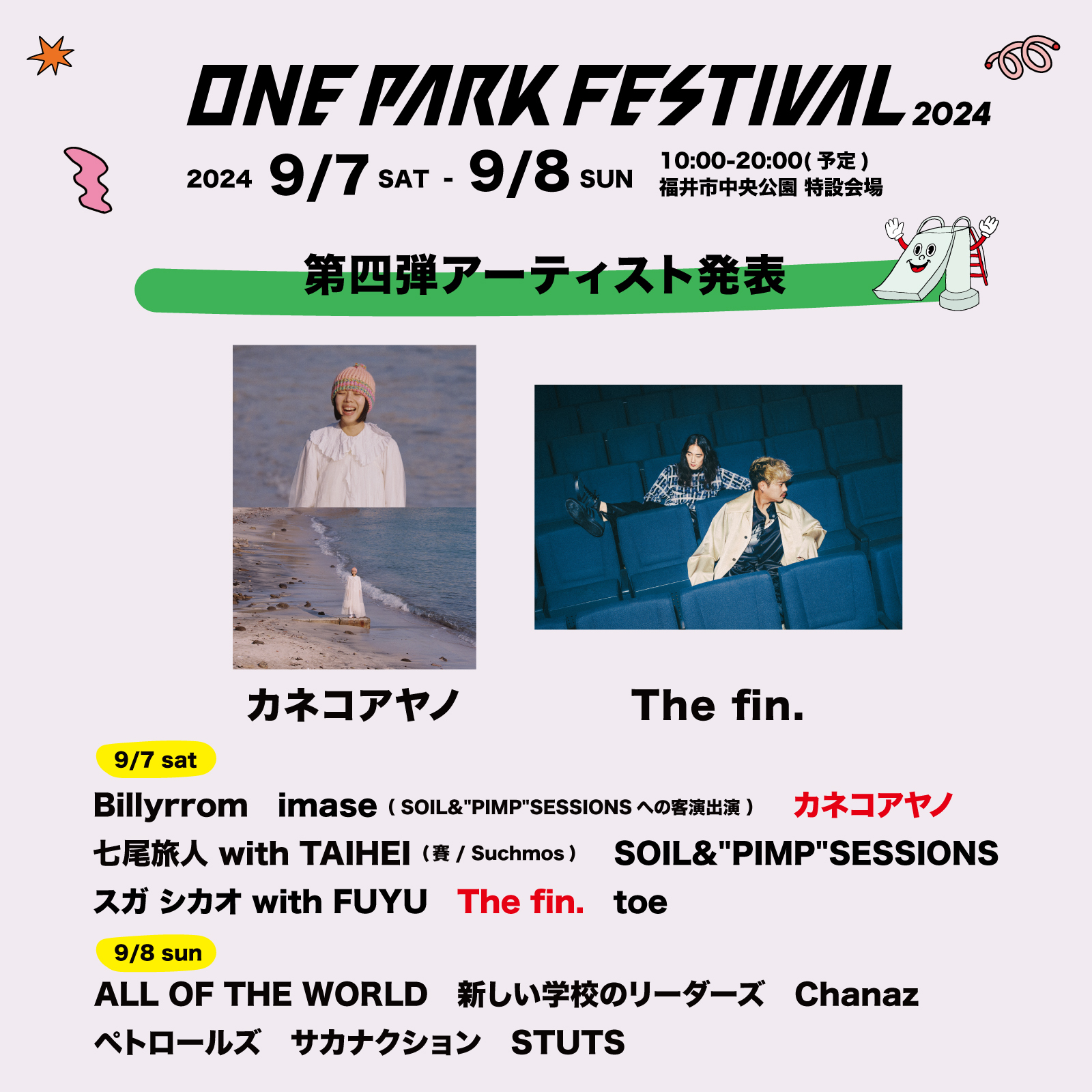 9月7日(土)・8日(日)に福井・福井市中央公園 特設会場で開催される『ONE PARK FESTIVAL2024』から、第4弾出演アーティストが発表された。