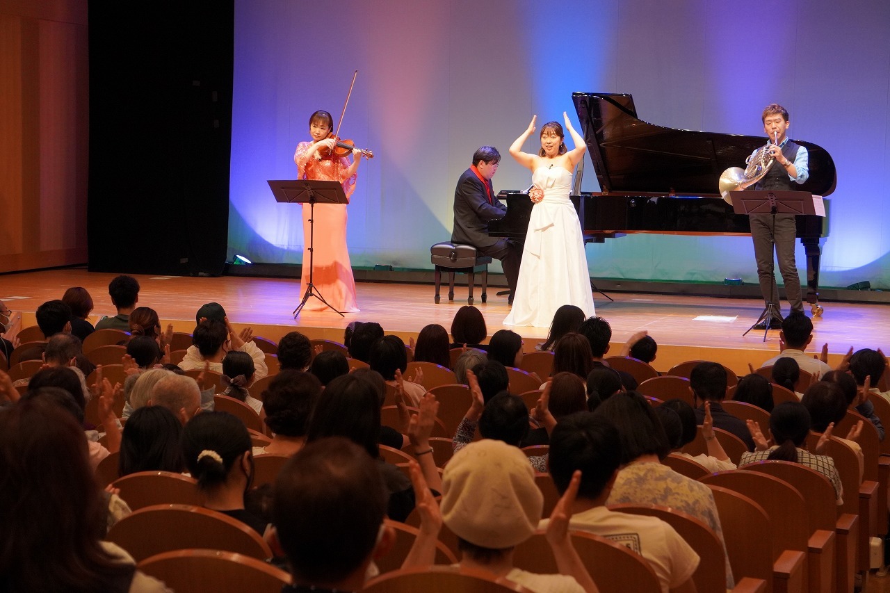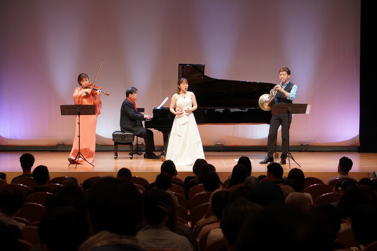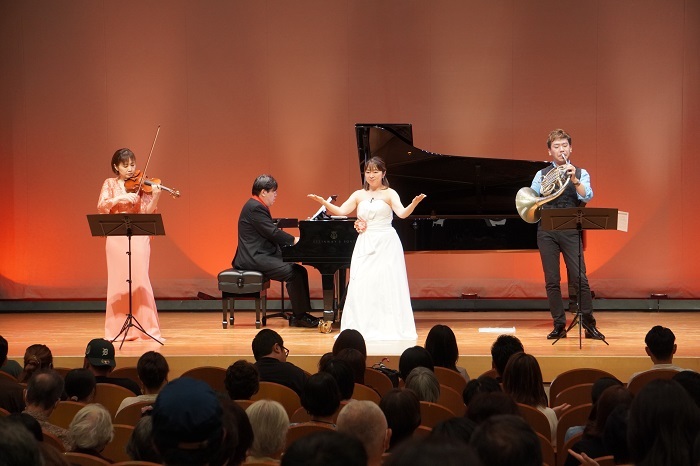 ソプラノ・ヴァイオリン・ホルン・ピアノが奏でる軽快なリズムと美しい旋律に、子どもたちは早くも目を輝かせて聴き入っていました。