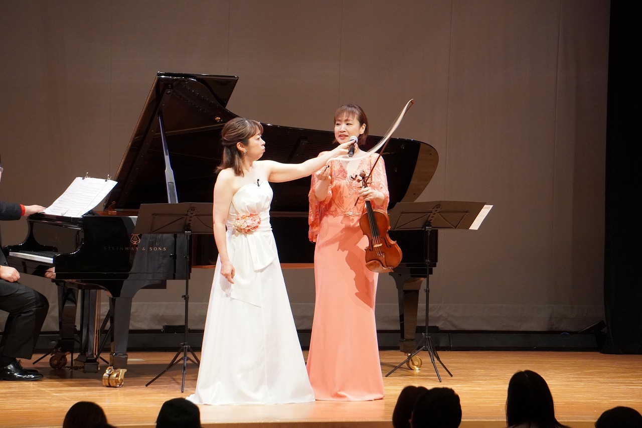 エルガー作曲「愛の挨拶」を演奏しながら、礒さんがヴァイオリンで皆さんにごあいさつ。