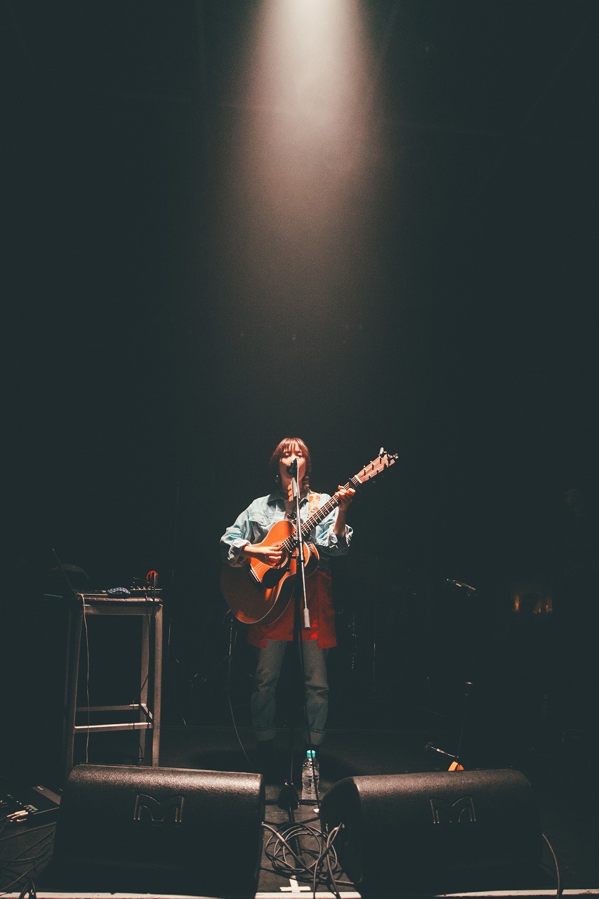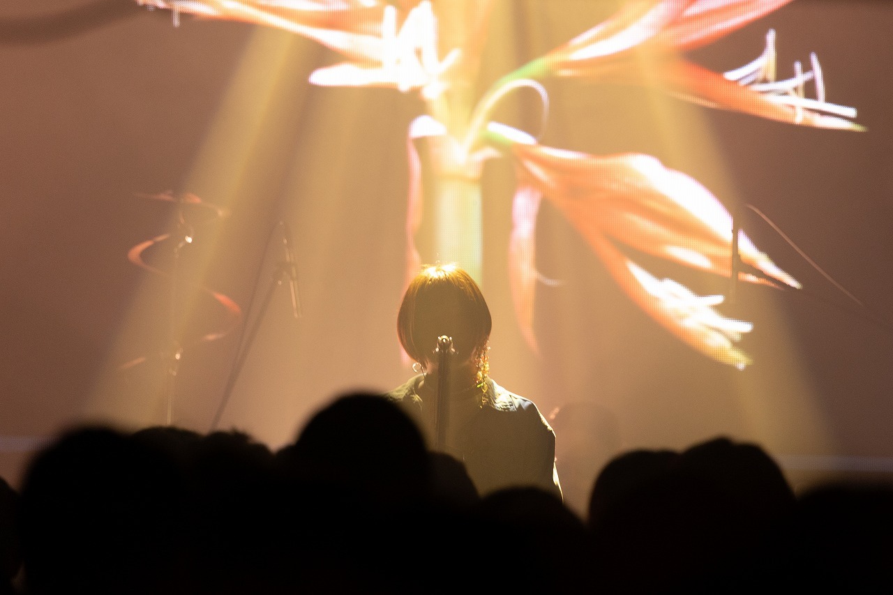 「生き急ぎすぎた自分への歌です。自分で作った曲に励まされている」と「存在証明」を披露。やわらかな光に包まれながら《なにも聞こえなくなった時には 光の方へ》《自分で決めたこの道なんだと明日へ一歩踏み出すのです》と強いメッセージを届けると、客席では涙を流しながら聴いている人も。ひとりでステージに残り、バーチャルアーティストIAに提供した「どんな世界だと知っても」は、様々な風景を切り取った映像と共に真っすぐ言葉を届ける。
